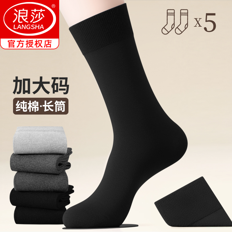 纯棉全棉袜秋冬男士 48码 黑色长筒袜 袜子男加肥加大46 浪莎加大码
