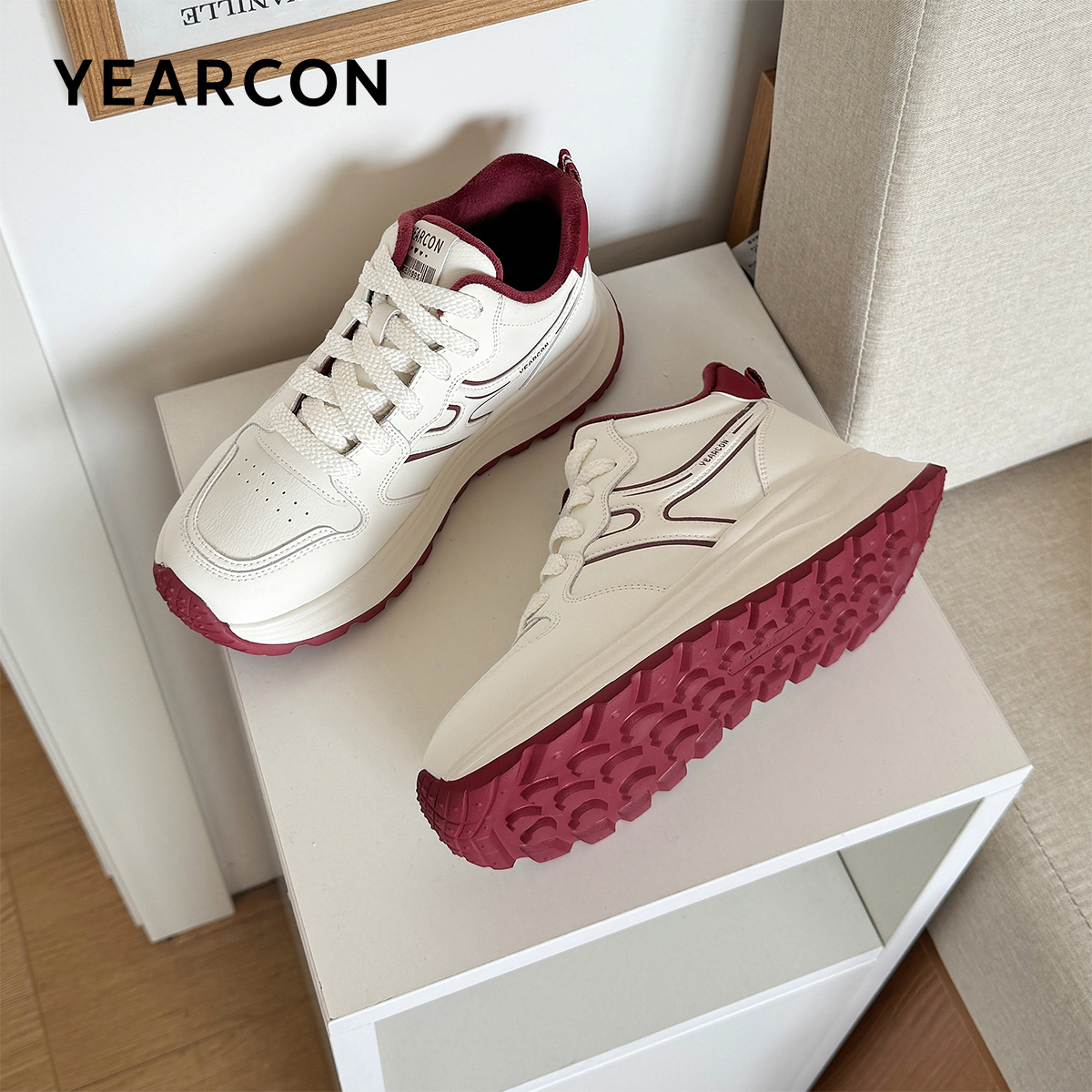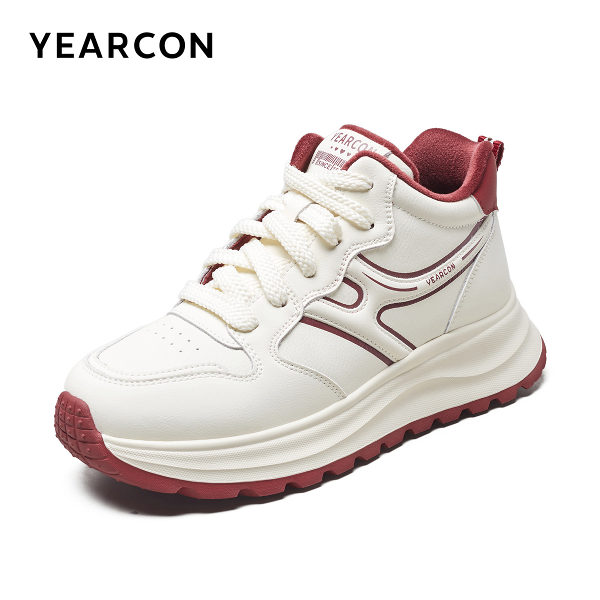 高帮厚底小白鞋 意尔康女鞋 加绒保暖运动休闲皮鞋 新款 软底 2025冬季
