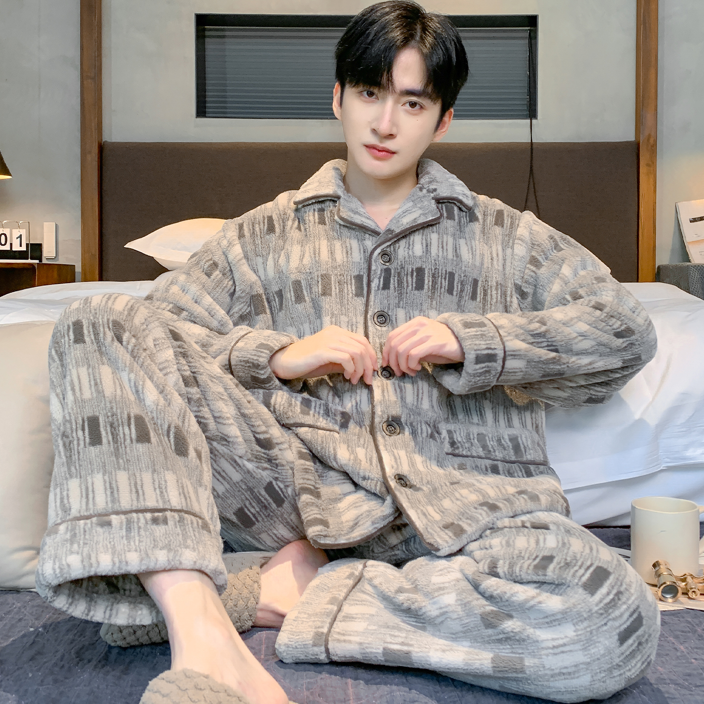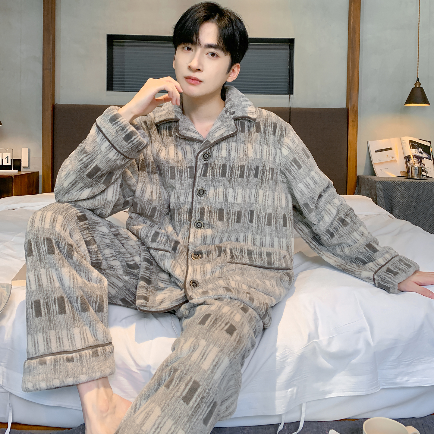 珊瑚绒加厚冬天防寒可外穿法兰绒家居服套装 南极人睡衣男士 秋冬季