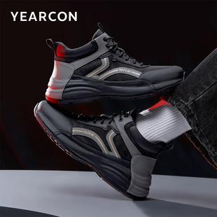 厚底潮流运动鞋 唐宫夜苑鸿星尔克高帮板鞋 男鞋 休闲鞋 2025秋冬新款