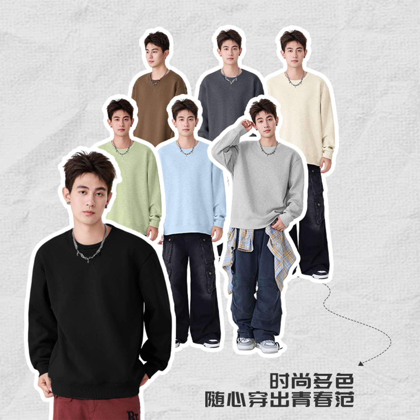 t恤男生外套 宽松潮牌青少年长袖 迈特优圆领卫衣男春秋季 新款