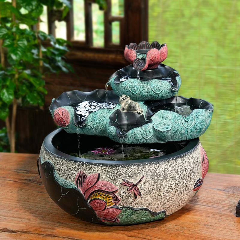 创意荷花喷泉流水摆件招财水景加湿器新中式 风水轮客厅桌面小鱼缸