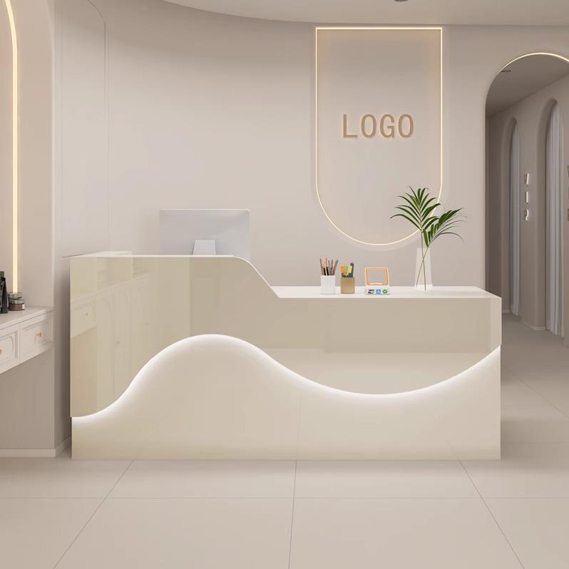 现代烤漆吧台桌公司前台接待台收银台小型理发店美容院柜台包安装