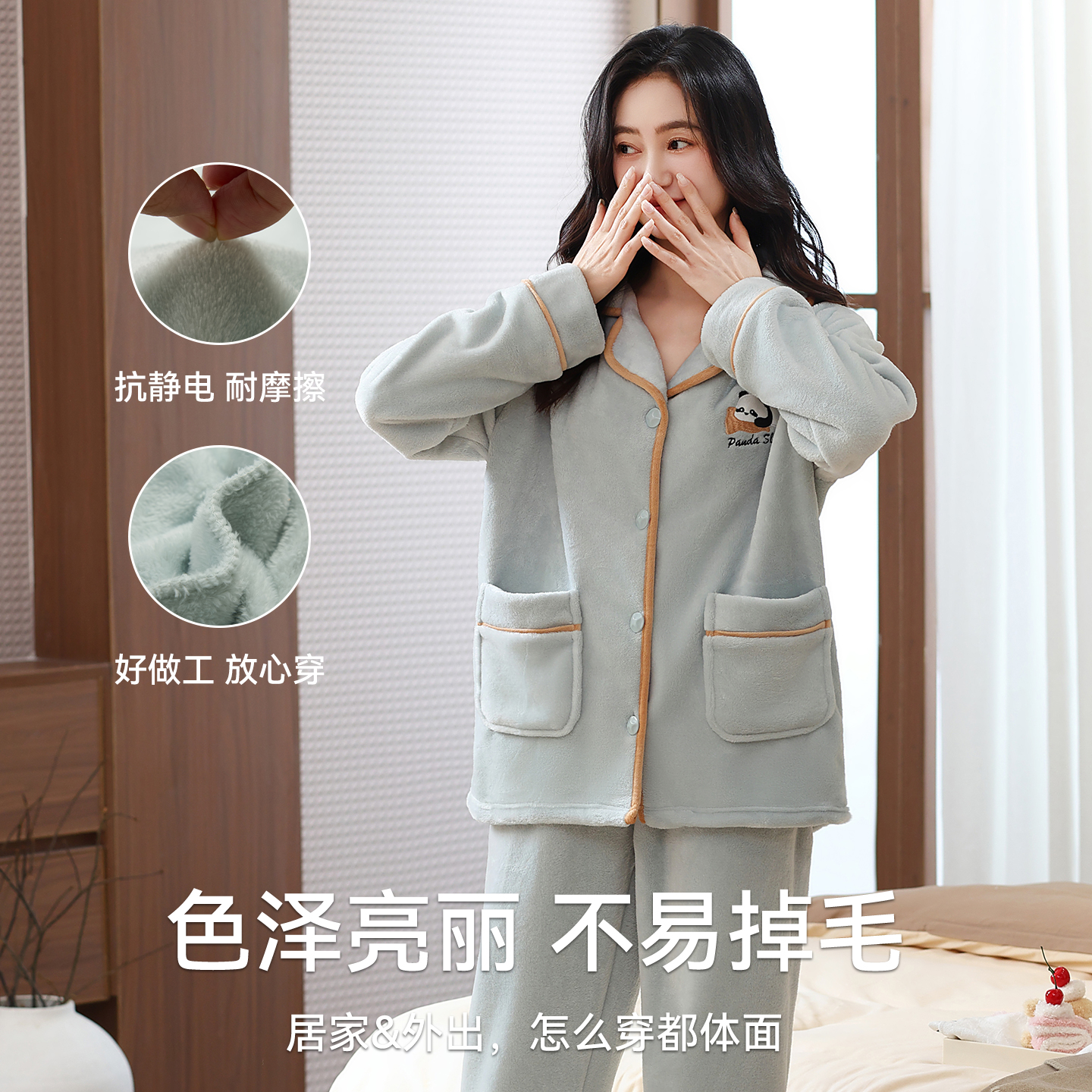 都市丽人珊瑚绒女睡衣秋冬2025冬季 加绒加厚保暖法兰绒家居服套装