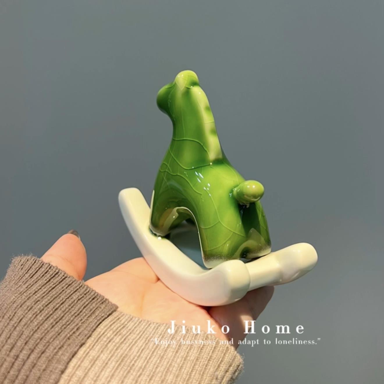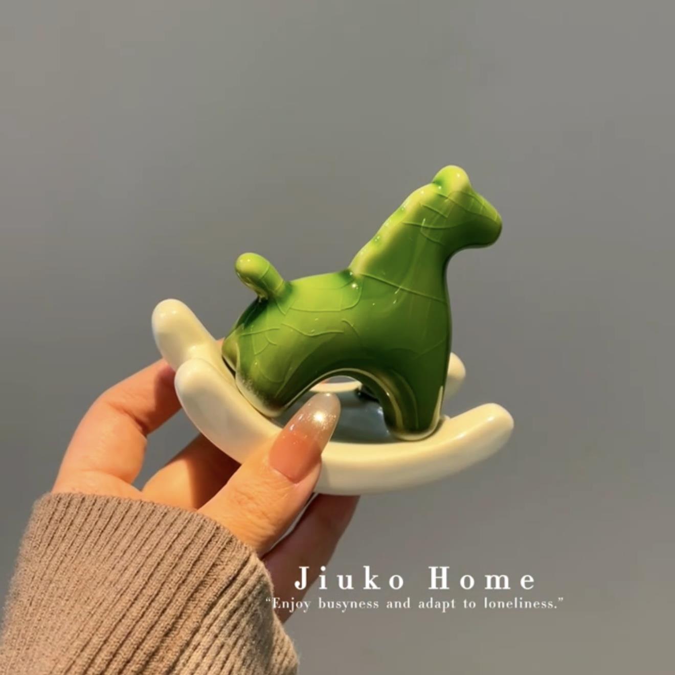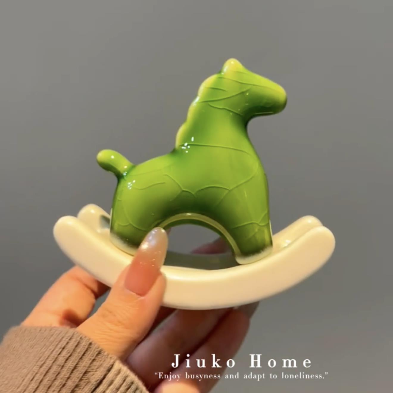 冰裂纹摇摇马摆件创意高颜值桌面玄关陶瓷装 饰品家居工艺品送朋友
