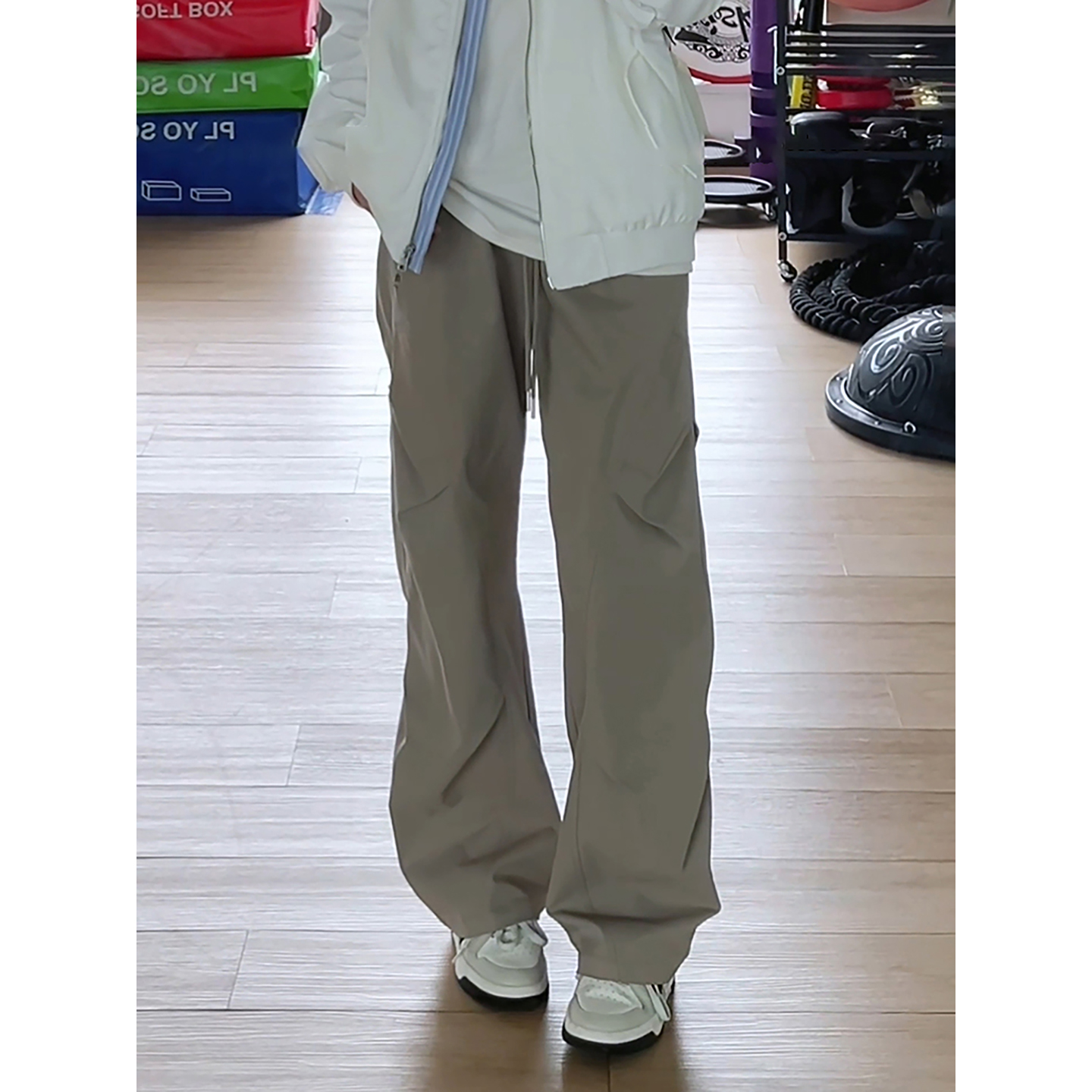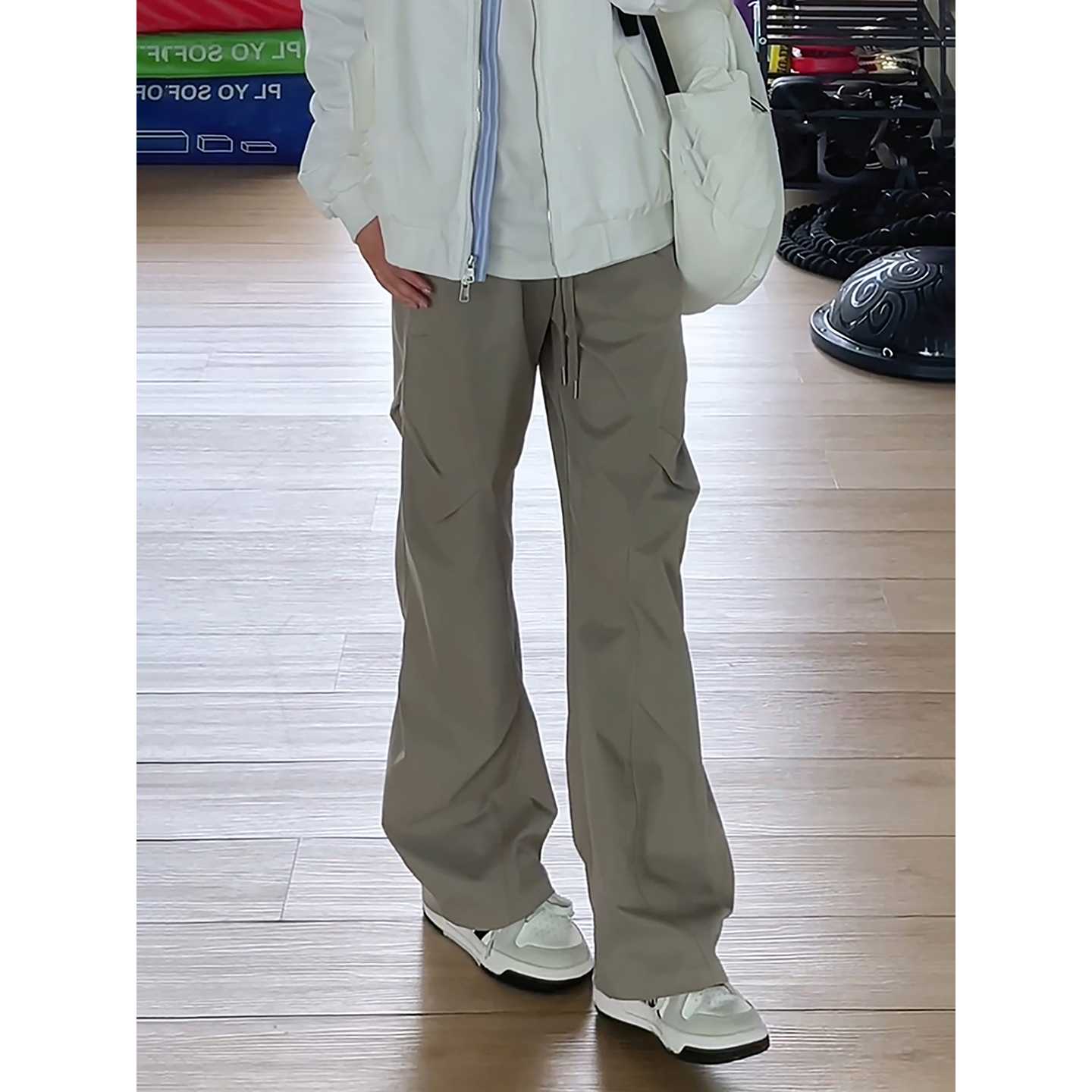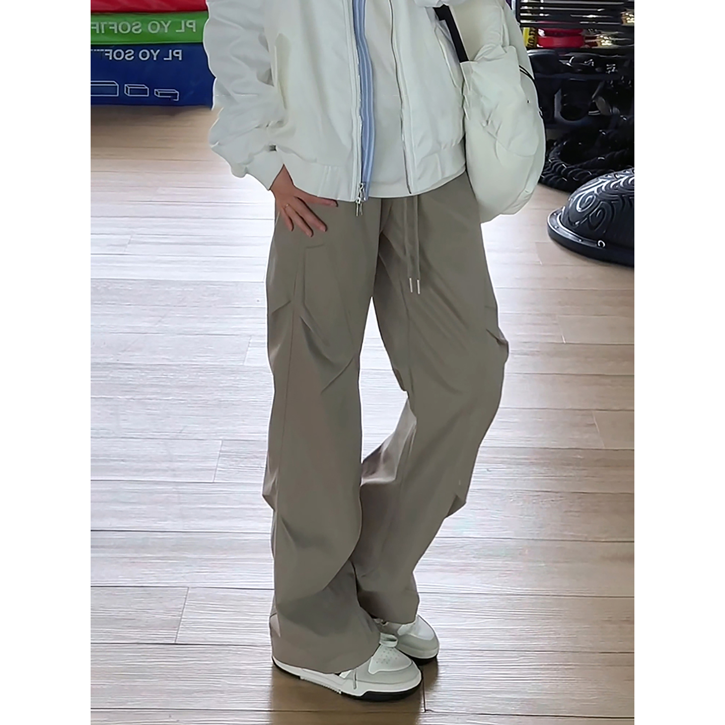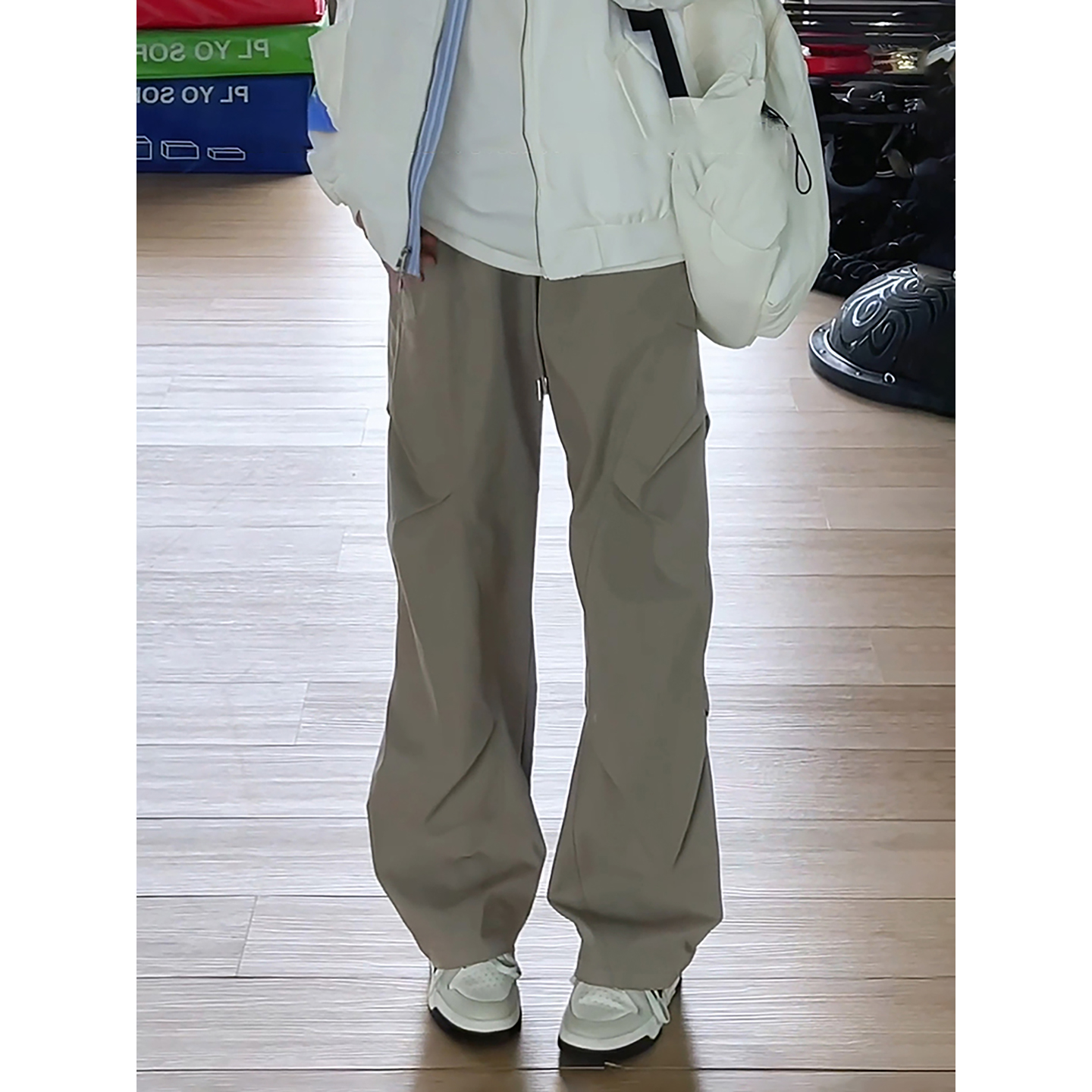 秋季 子男款 褶皱伞兵工装 裤 卡其色美式 直筒宽松运动长裤 高街vibe裤