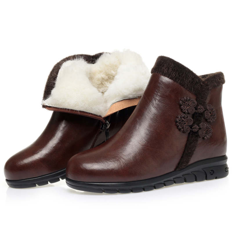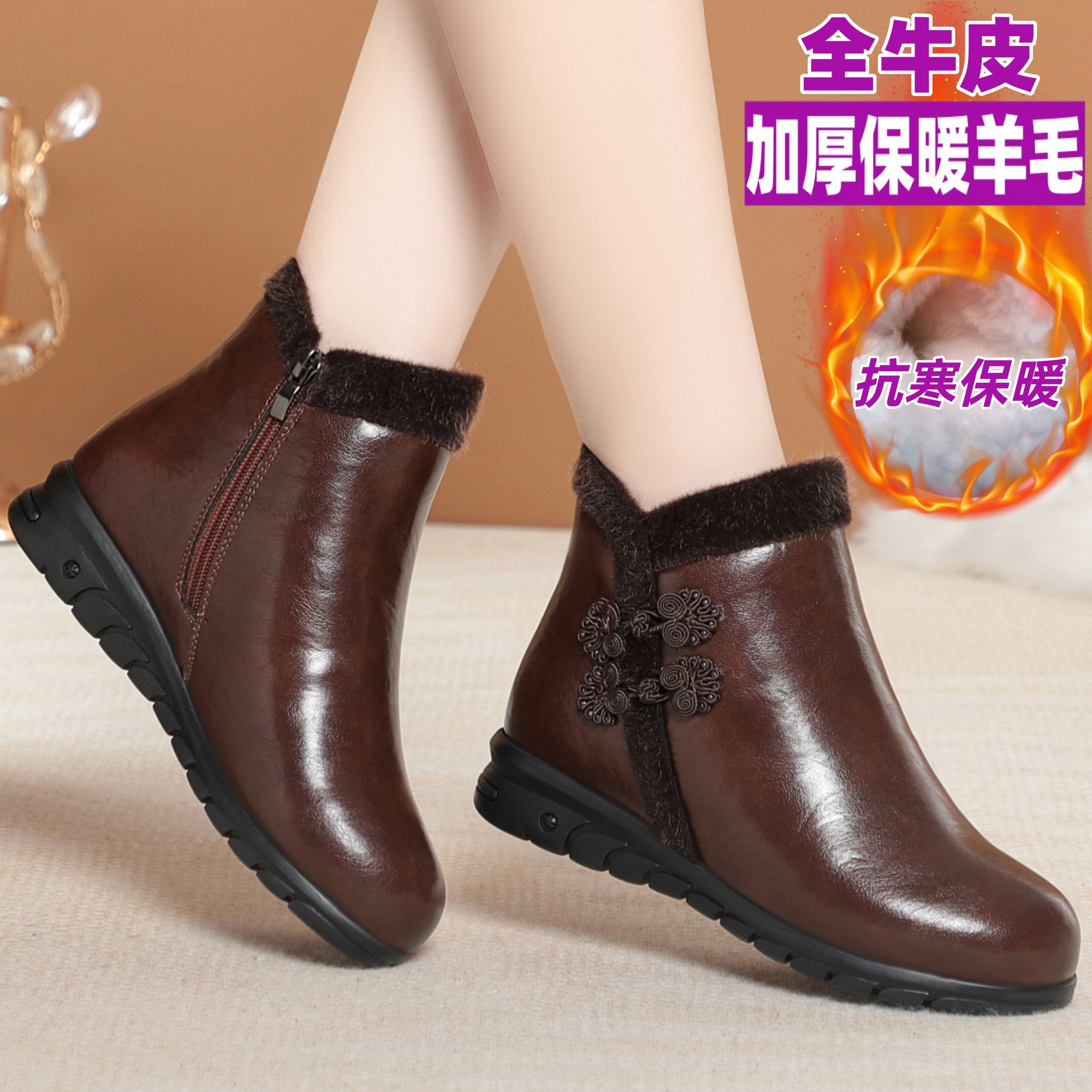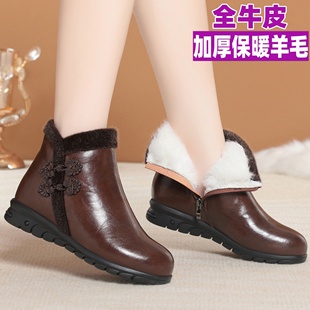 奶奶鞋 真皮妈妈棉鞋 女冬加绒靴子中老年女士短靴软底防滑羊毛皮鞋
