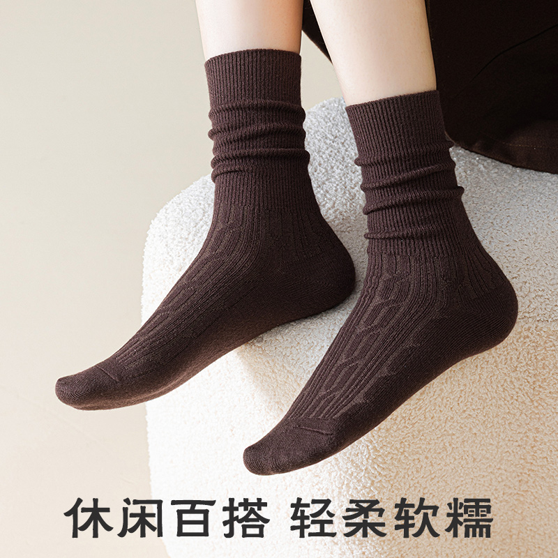 棉伙棉伴海藻袜舒适抗菌防臭男女商务运动纯色裸感中筒袜