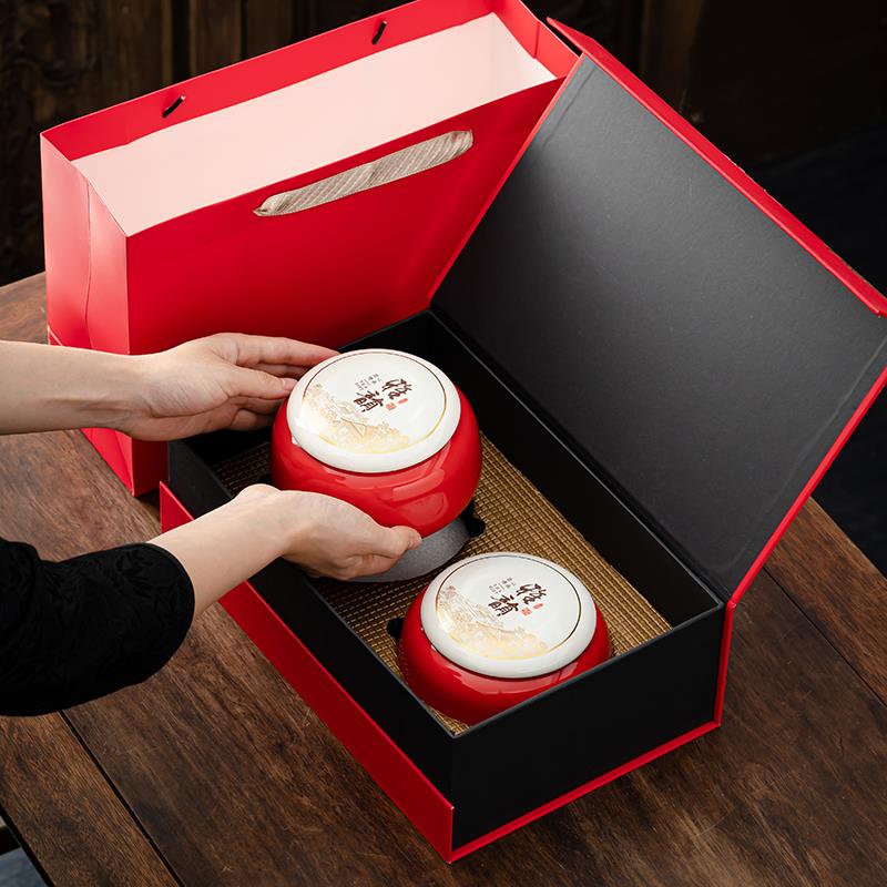 达冠陶瓷茶叶罐高端礼盒空罐装 龙井碧螺春绿茶红茶空礼盒送礼双罐