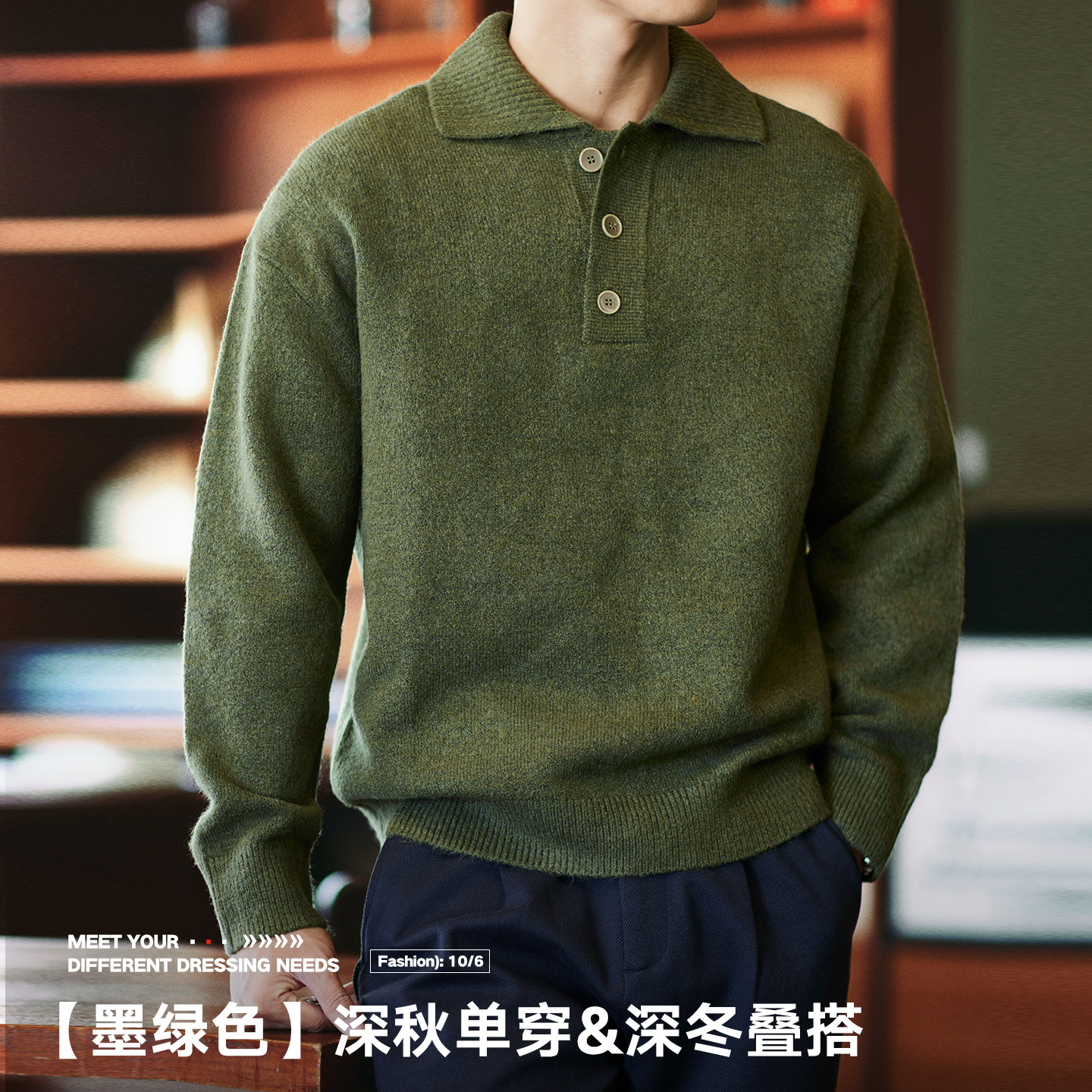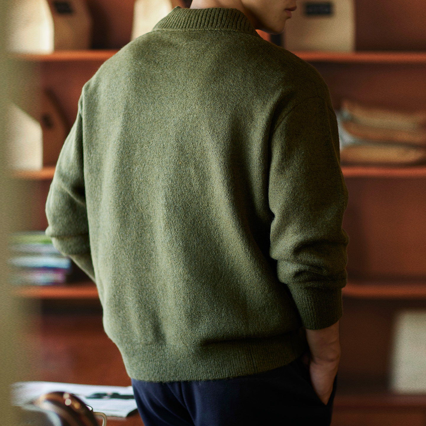 休闲半拉链加厚针织衫 红豆毛衣男2025新款 男士 重磅100%羊毛衫