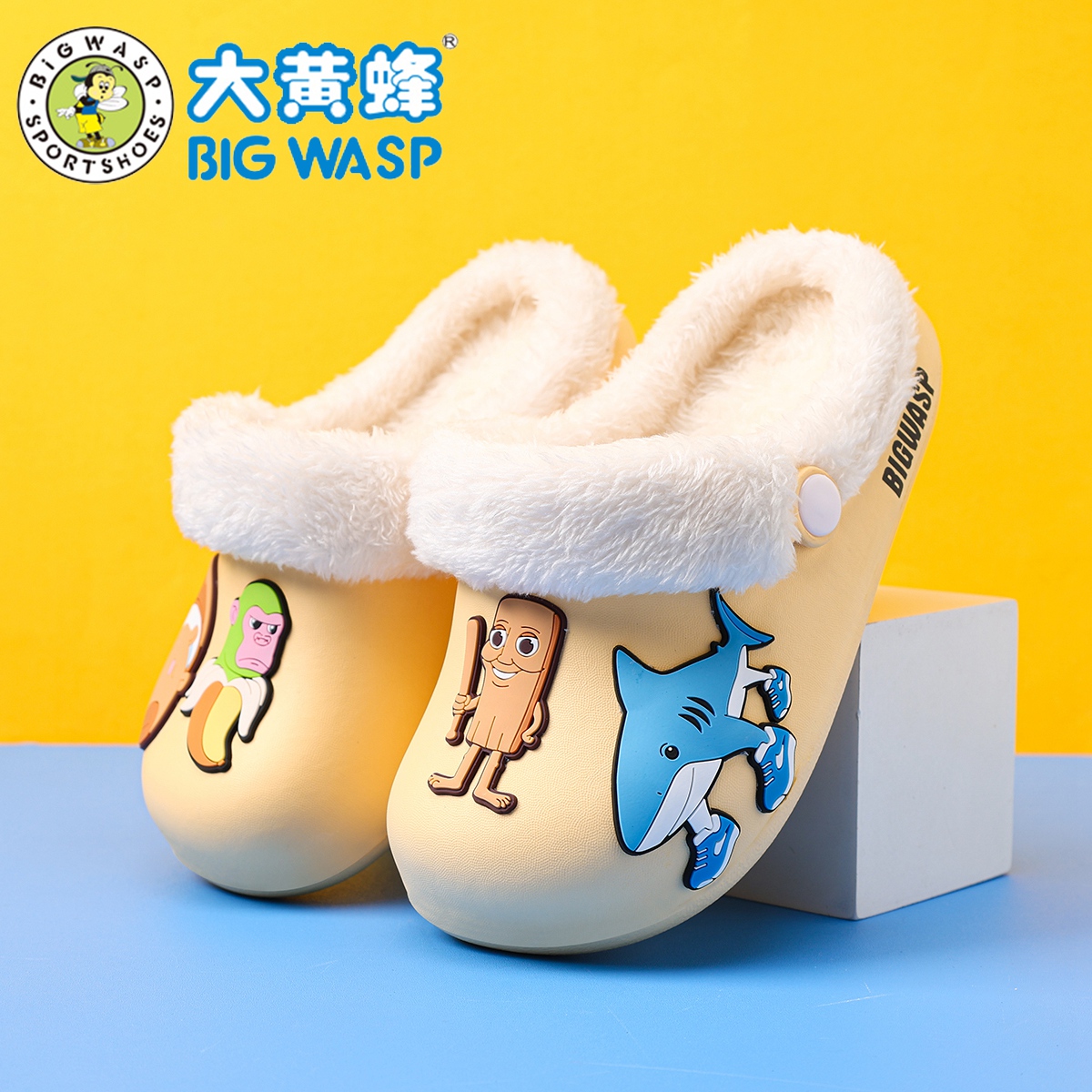 加绒居家静音室内防滑男孩棉鞋 冬季 男童保暖棉拖鞋 大黄蜂儿童拖鞋