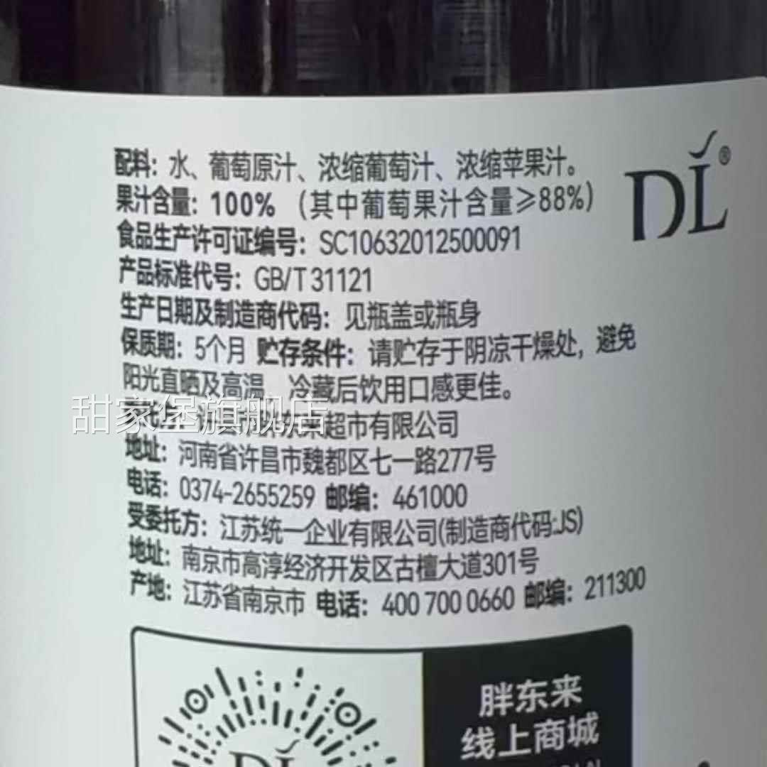 胖东来葡萄汁混合果汁橙汁桃汁超市线上代购 旗舰店 超市官方正品