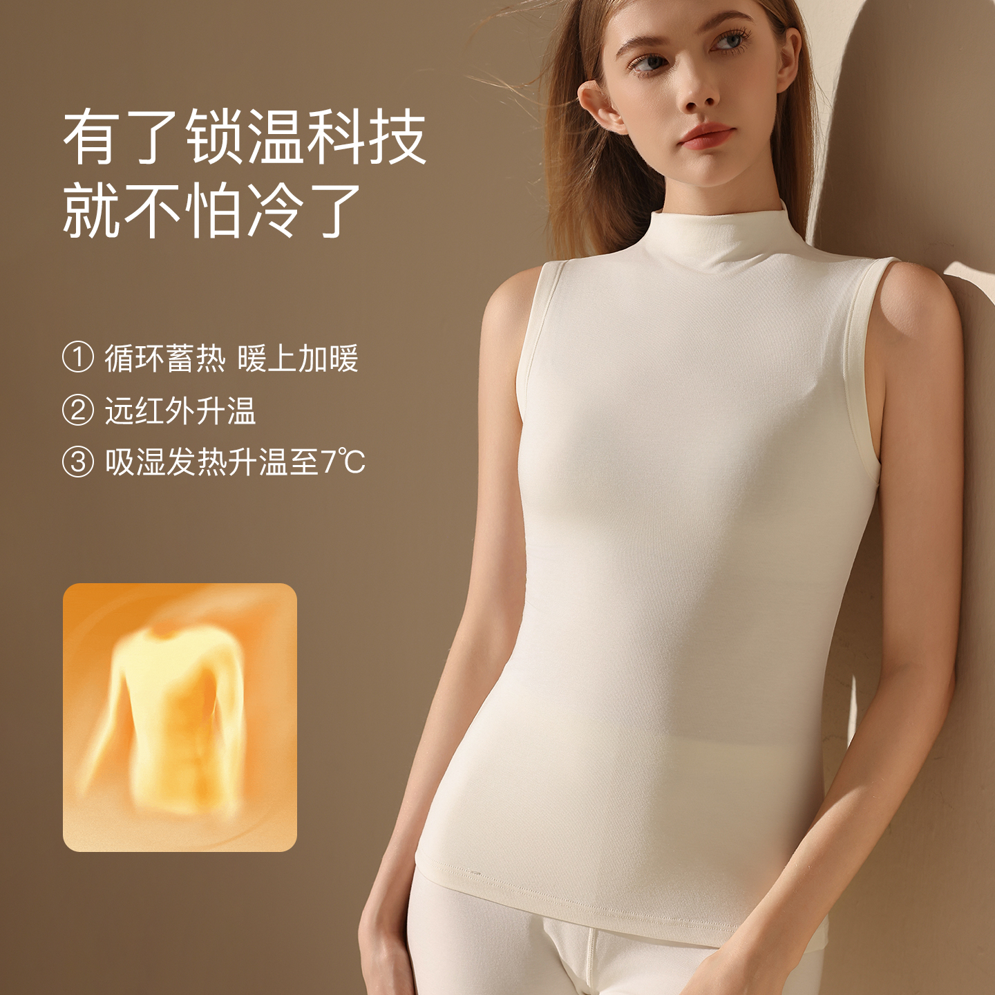 恒源祥秋冬新款 德绒发热绵羊毛上衣 高领保暖背心女内搭叠穿打底衫