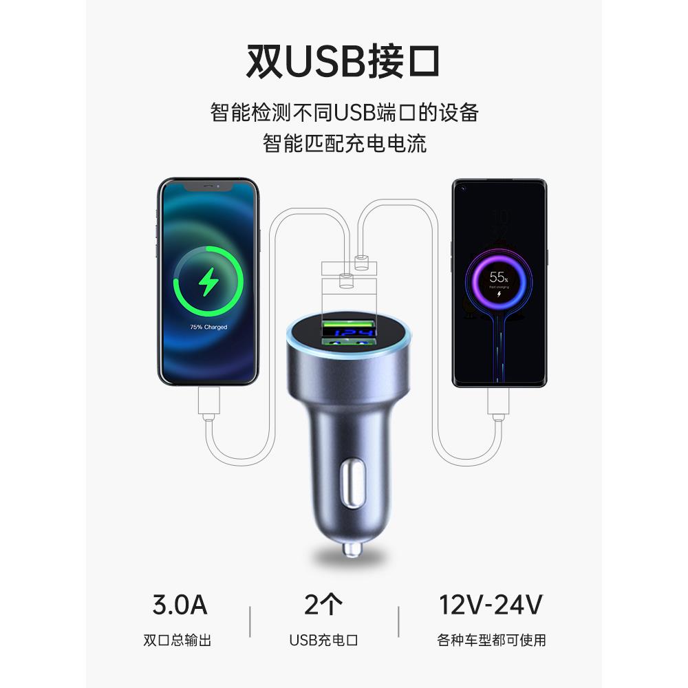 车载充电器手机超级快充头点烟器一拖二转换插头车充插座汽车接口