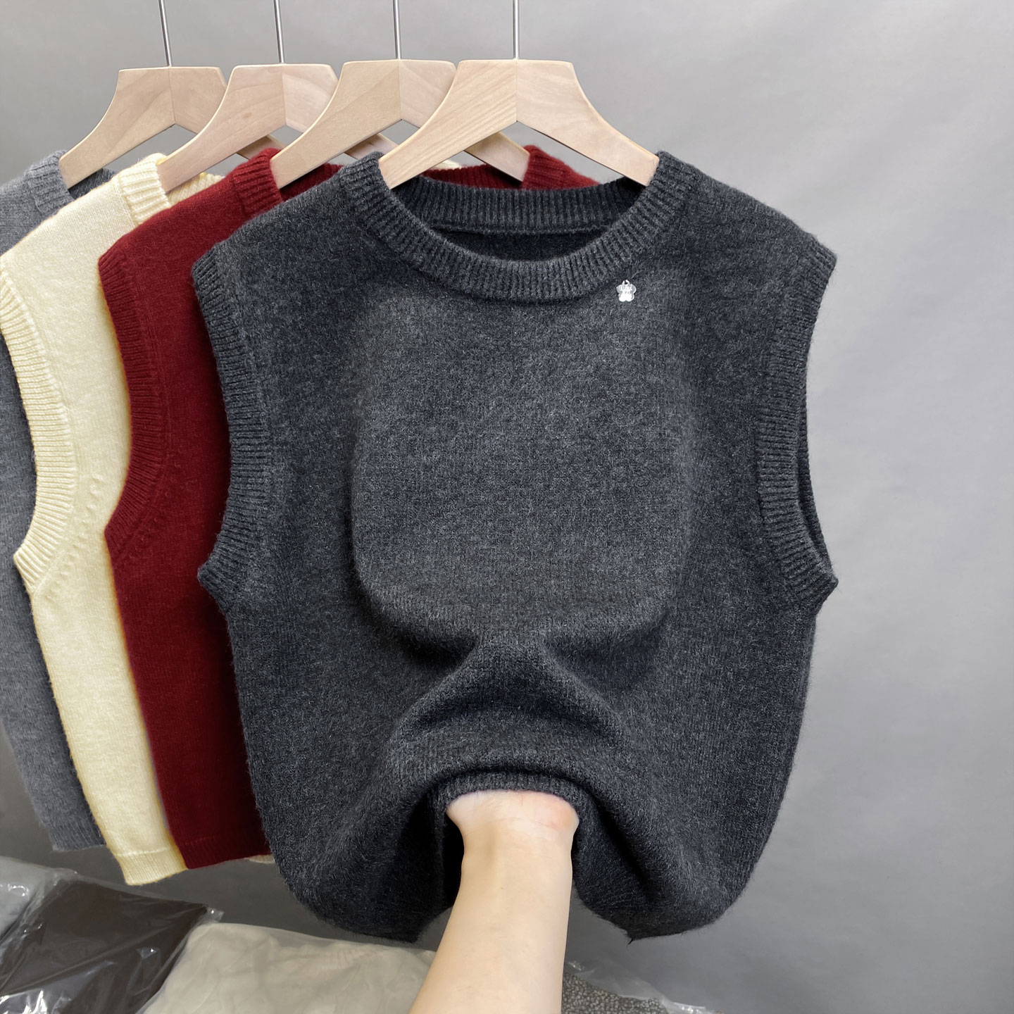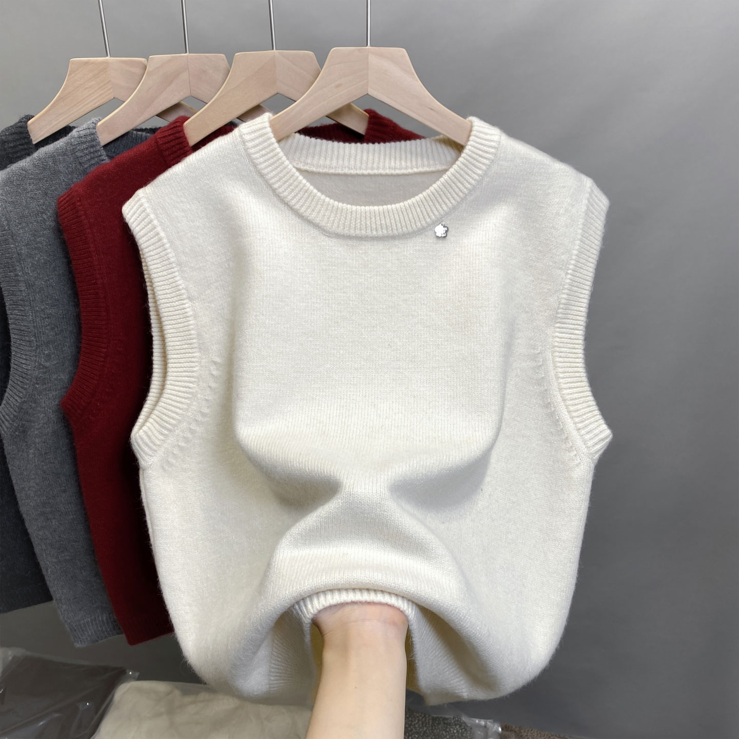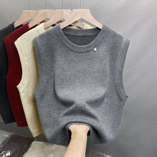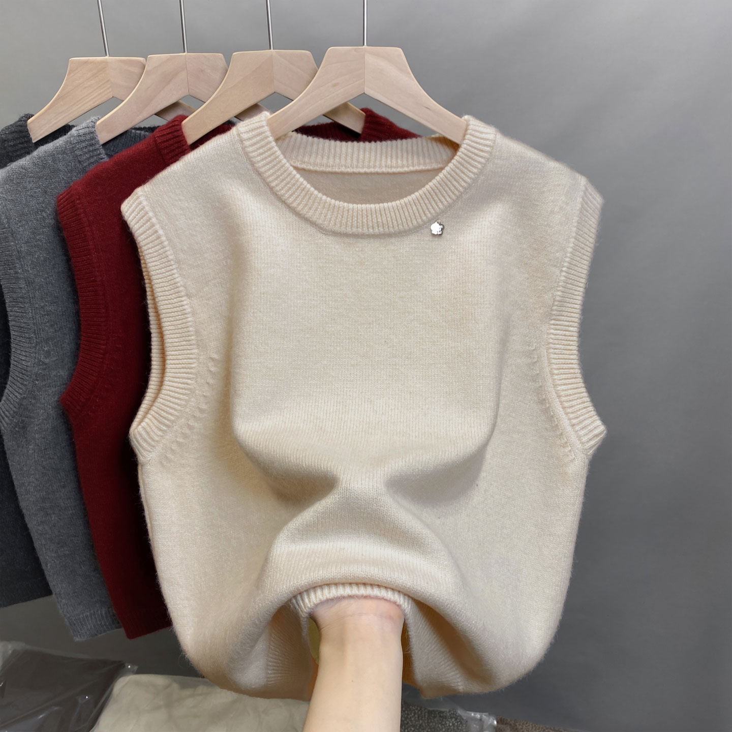 镂空花边纽扣针织衫 秋天叠穿马甲 吊带背心女内搭上衣外搭独特罩衫