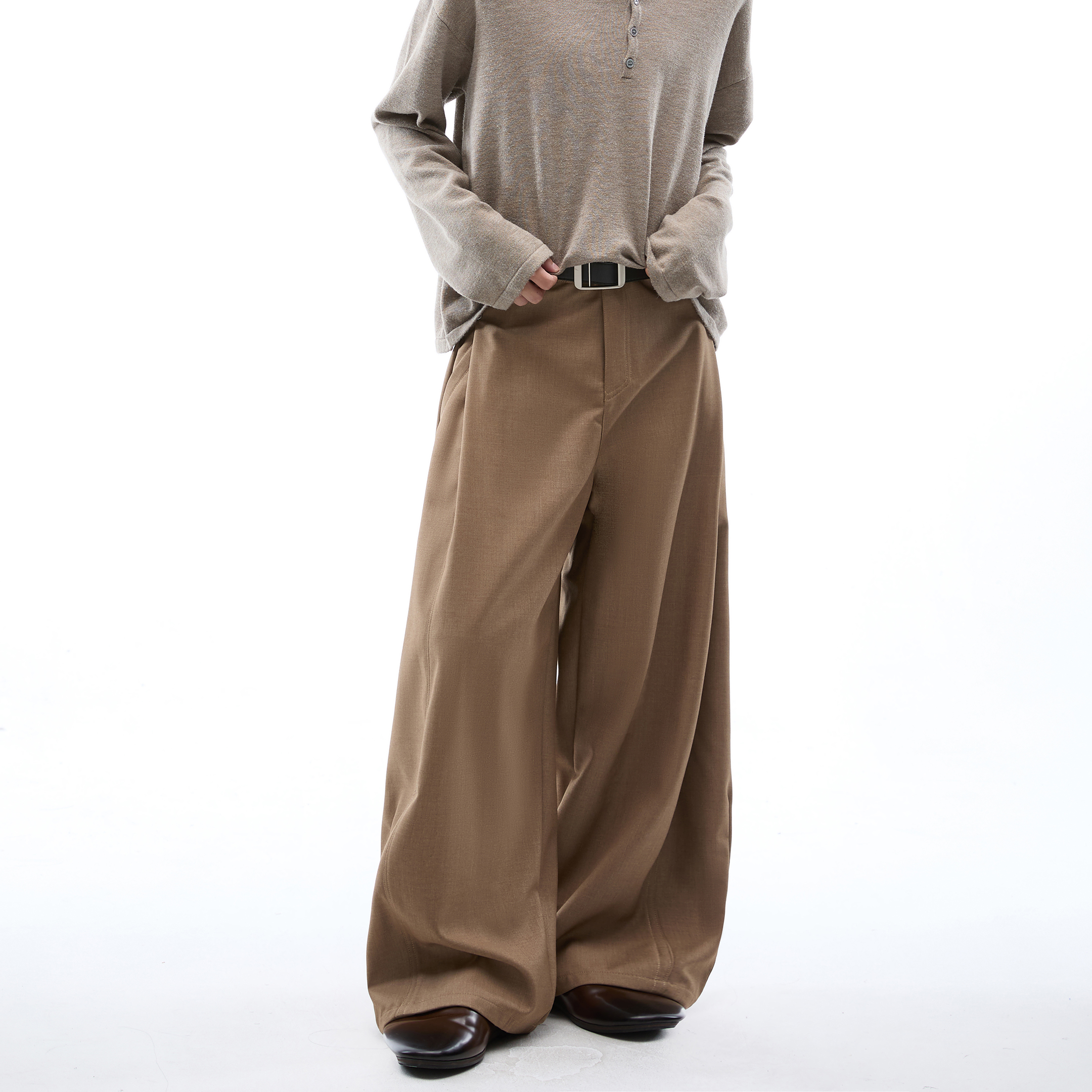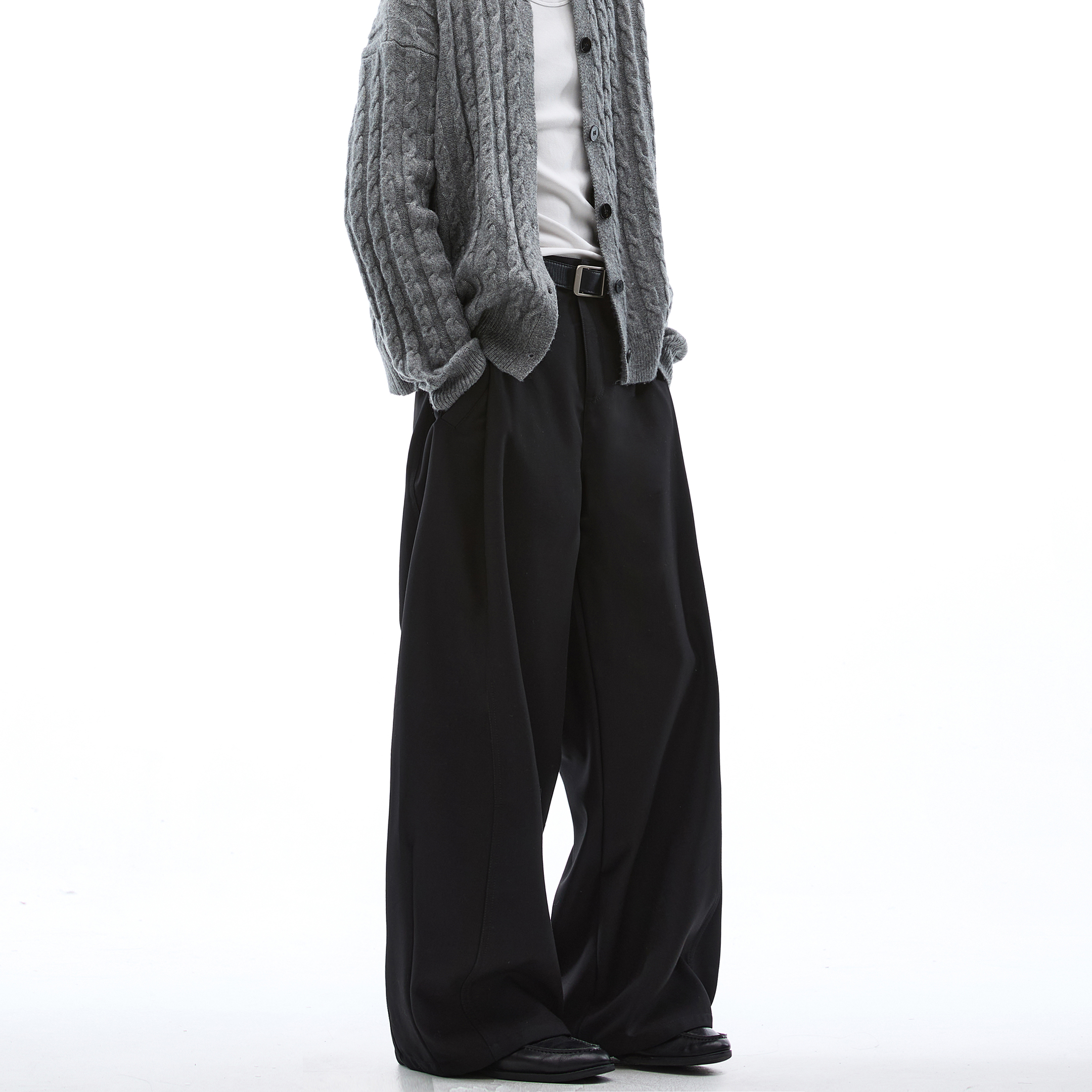 复古分割抽褶直筒休闲裤 裤 女秋季 宽松垂感情侣阔腿西装 子 新款 美式