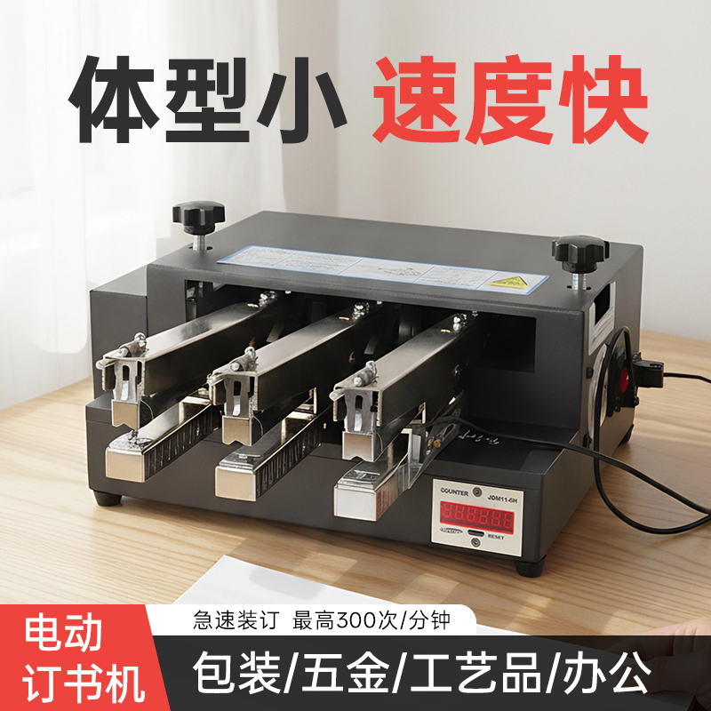 装 订机A4纸张全自动订书器五金包装 订器文件双头订书钉 自动钉书机办公室小型装 宝预三头电动订书机智能感应式