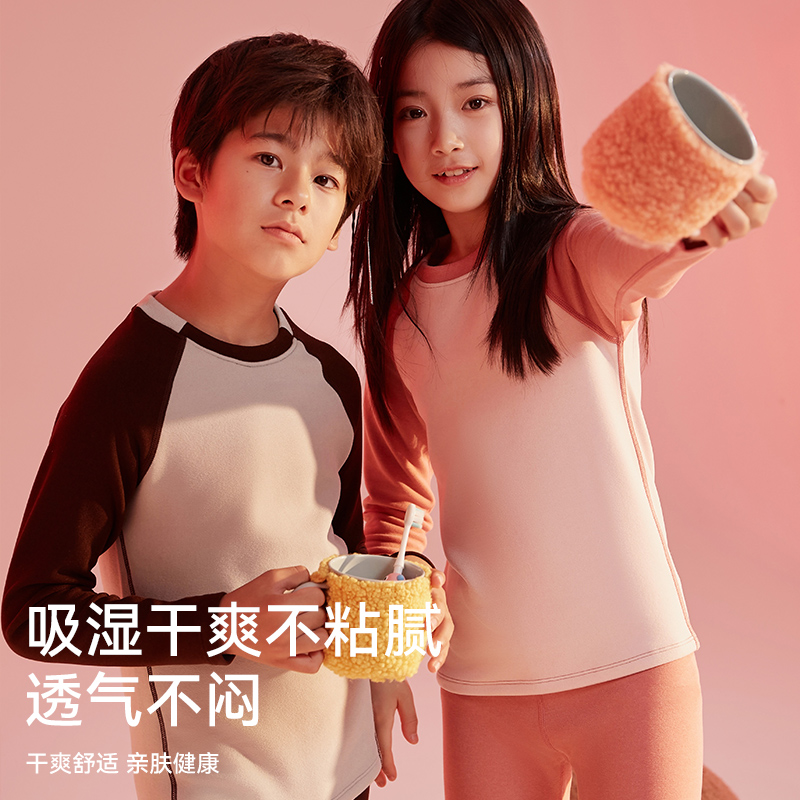 鸭鸭儿童莱赛尔保暖内衣男女童秋冬德绒羊绒加厚宝宝秋衣秋裤 套装