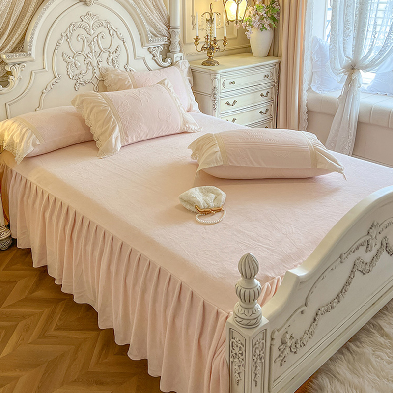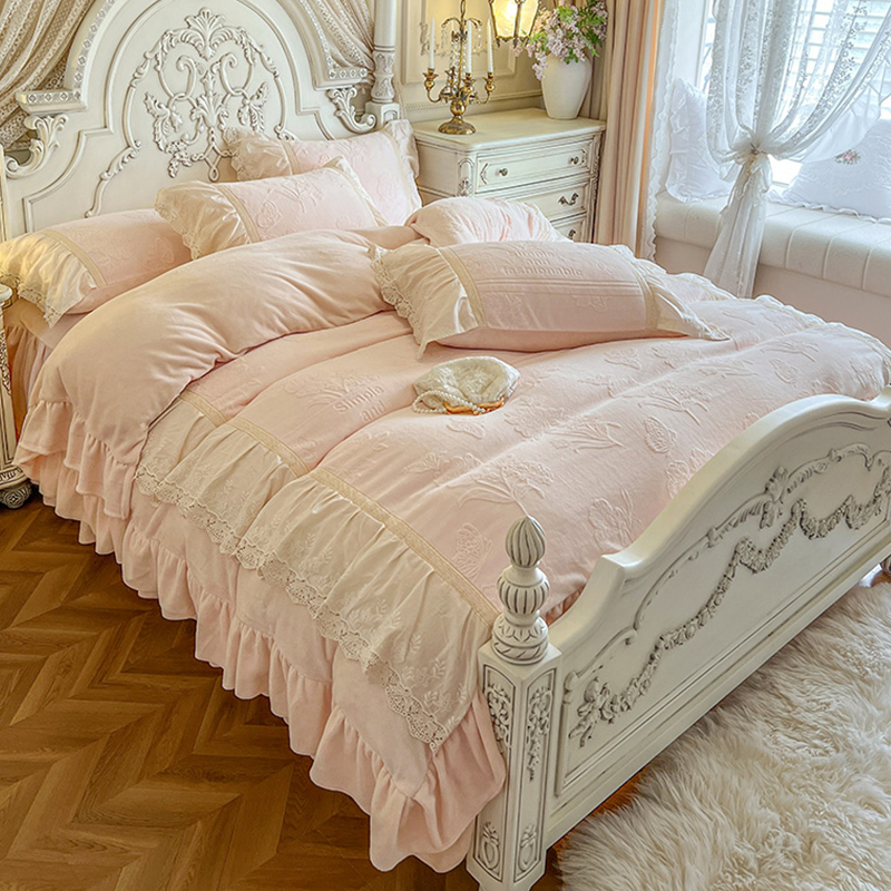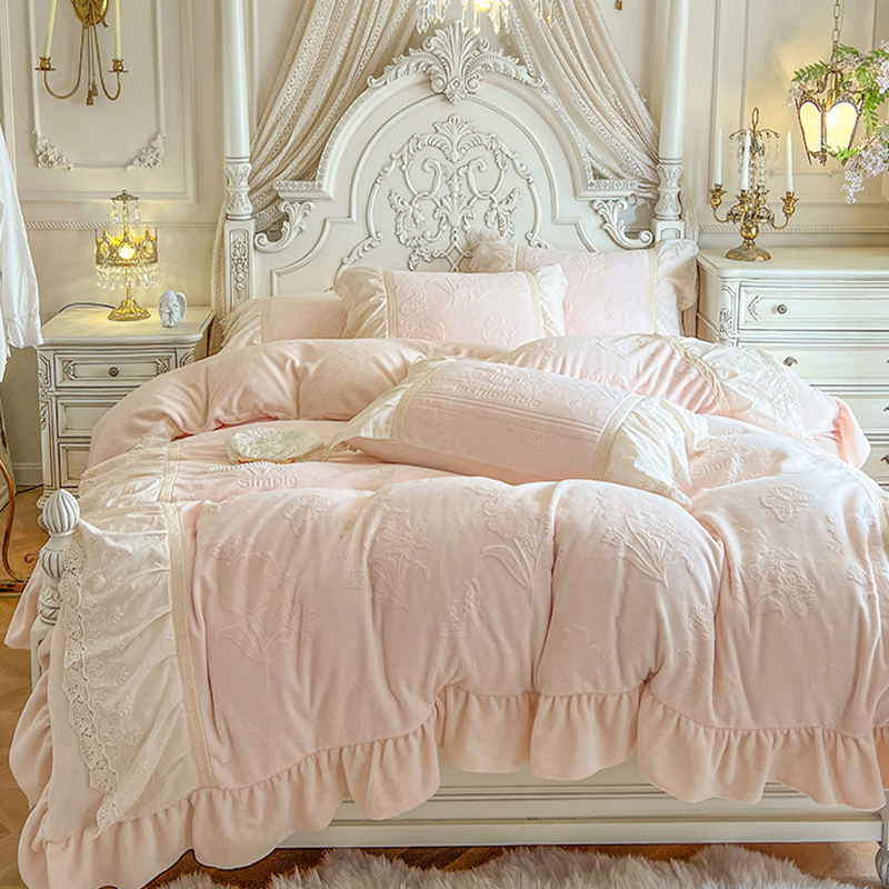 高档雕花绒四件套轻奢高级感牛奶绒床裙款 公主双面绒花边被套冬天
