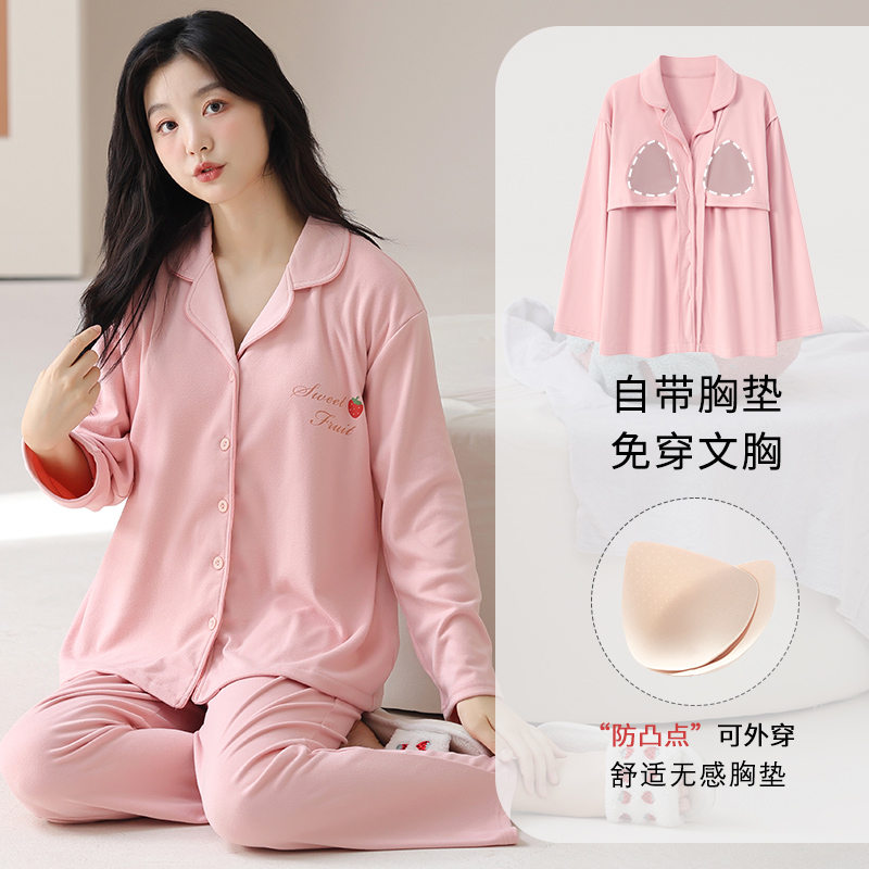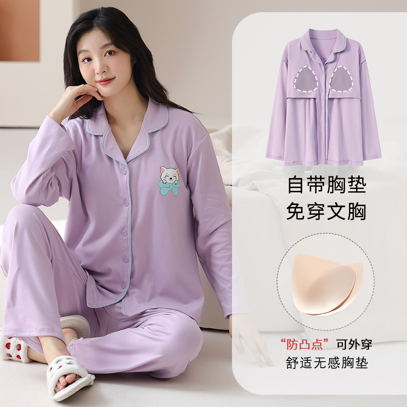 大码 春秋开衫 女士家居服 加厚珊瑚绒睡衣女冬法兰绒加绒套装 秋冬季