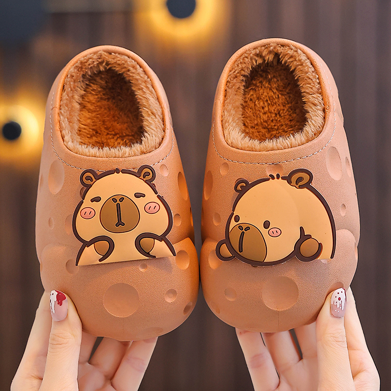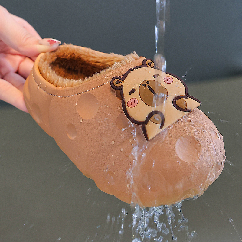 卡皮巴拉儿童防水棉拖鞋 男孩 男童室内防滑毛绒保暖中大童宝宝拖鞋