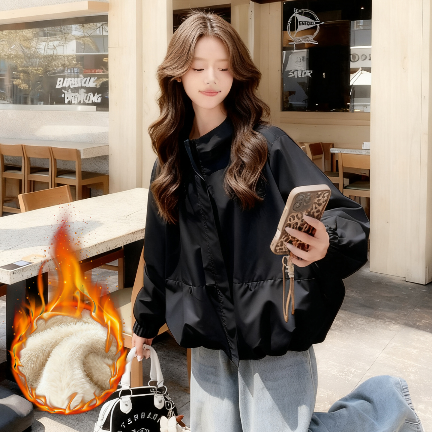 女士秋季 巨好看粉色宽松休闲加绒保暖冬上衣 厚外套女2025秋冬新款