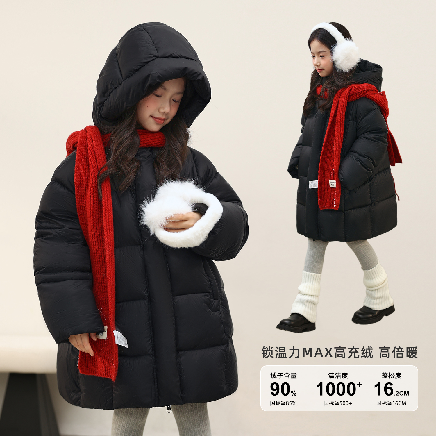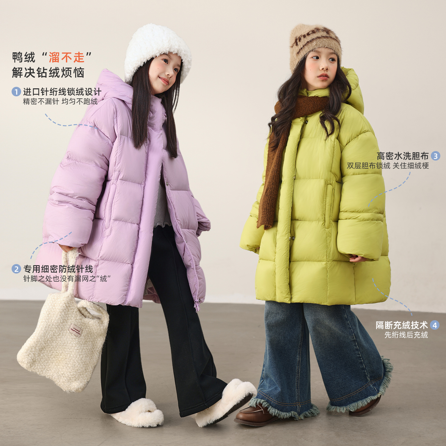 加厚青春 连帽羽绒服H型牛角扣学院时尚 雪中飞2025冬新款 女士长款