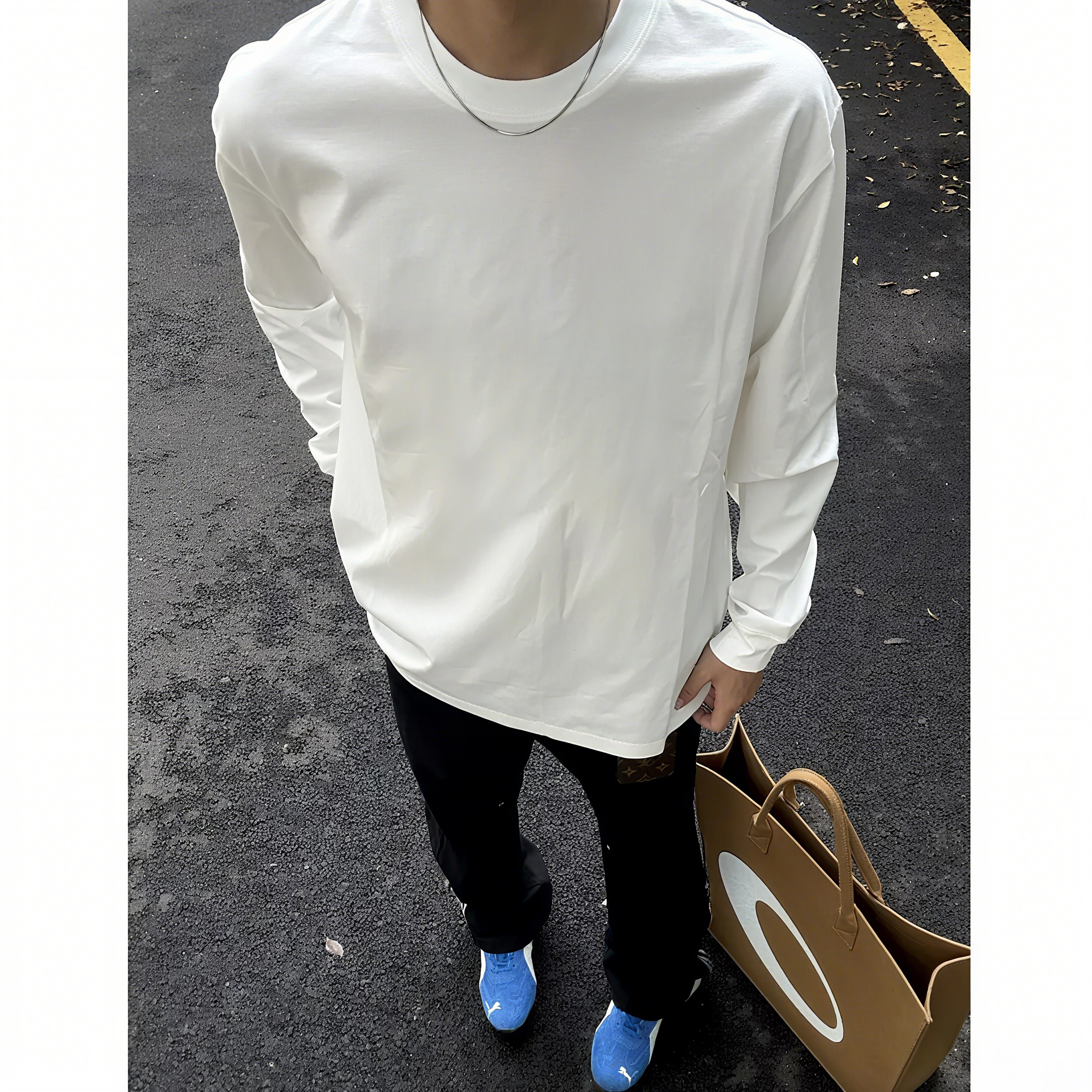 内搭重磅长袖 黑色圆领纯棉打底衫 高街卫衣基础款 秋冬美式 t恤 男款
