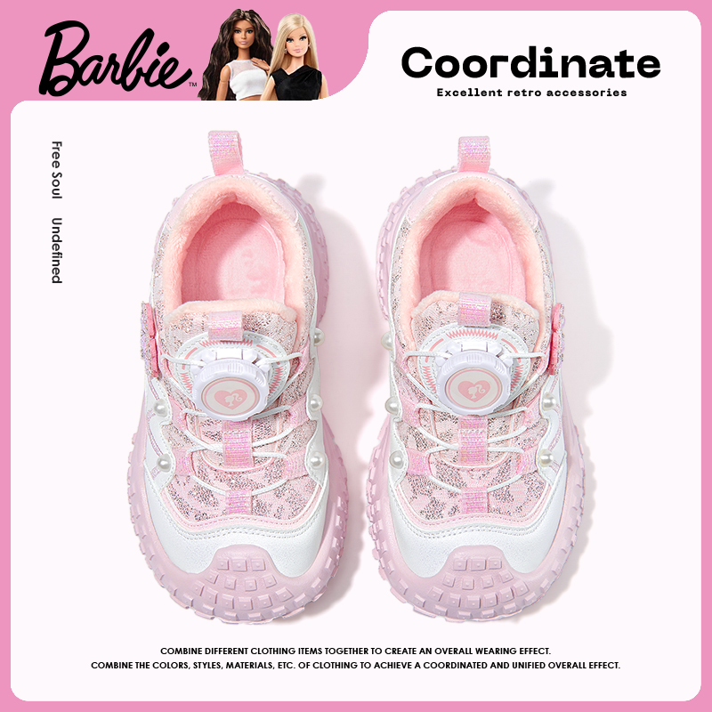 儿童二棉鞋 芭比童鞋 秋冬加绒小女孩艾莎公主鞋 2025新款 女童运动鞋