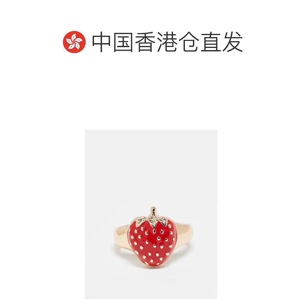 金色 1h可退 设计红色珐琅草莓色调戒指 女士 香港直邮ASOS