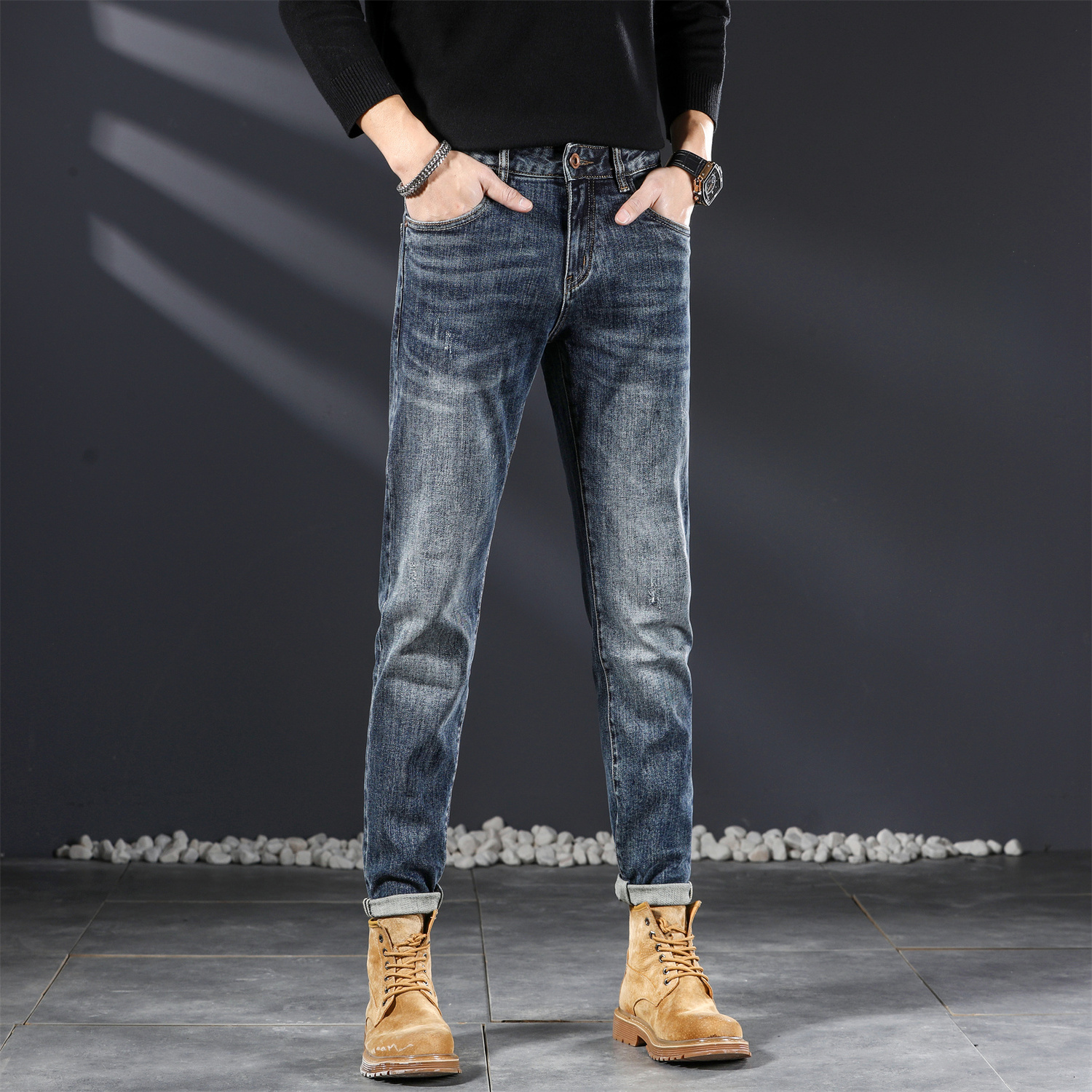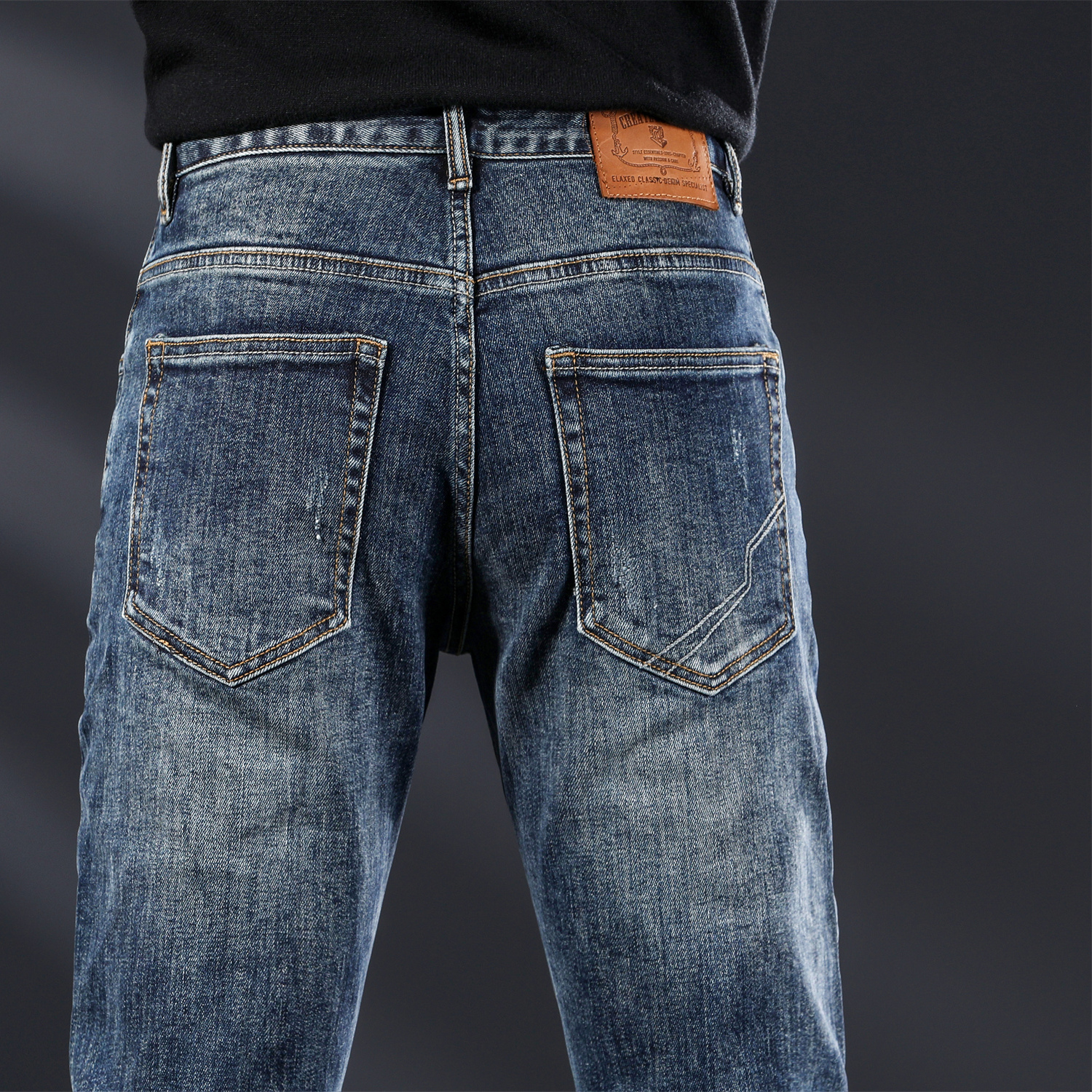 高街牛仔裤 2025经典 男痞帅直筒裤 秋冬弹力时尚 磨白潮牌 男修身 美式