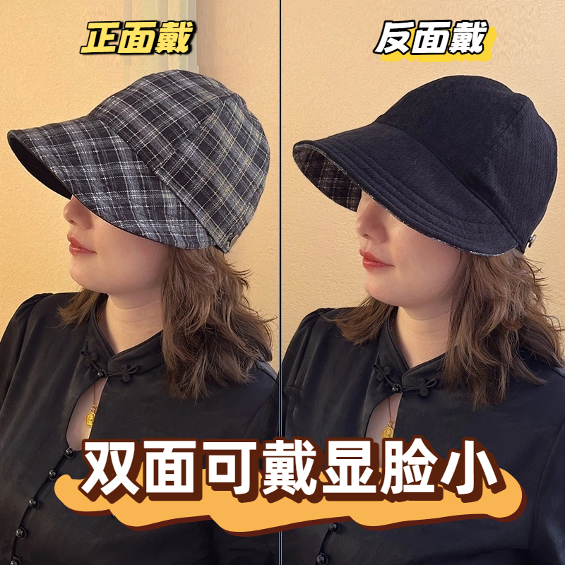 双面露思款 灯芯绒格纹棒球帽子复古风保暖马术帽 鸭舌帽子女秋冬季