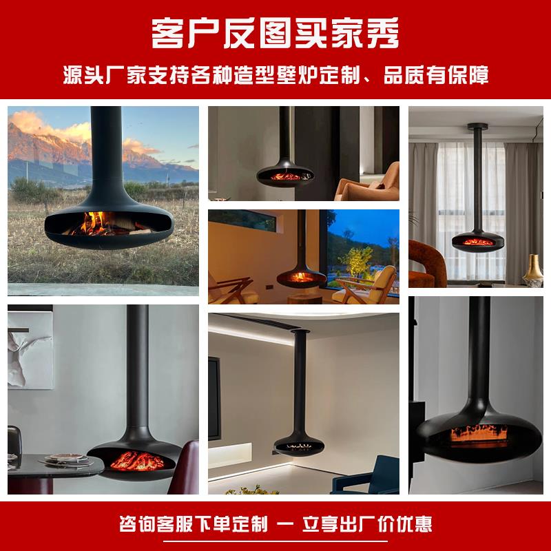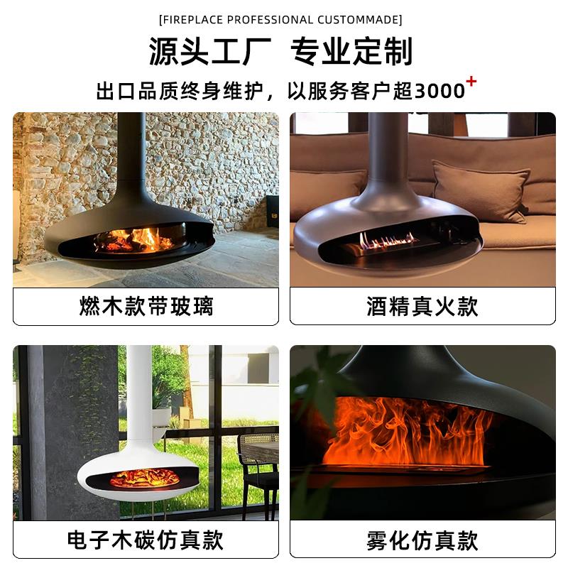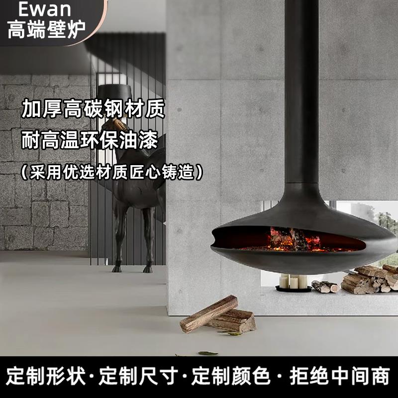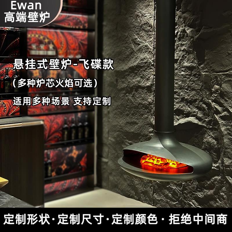 饰艺术飞碟吊炉定制 别墅民宿室内装 悬挂式 壁炉真火燃木柴取暖欧式