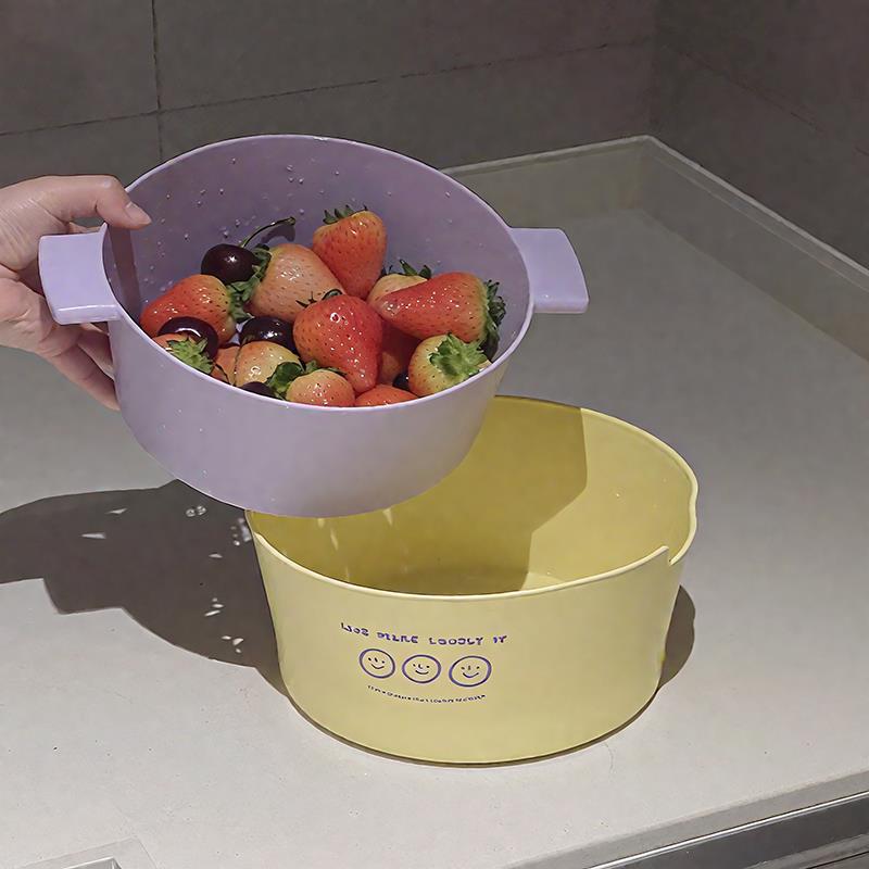 双层沥水果盘客厅茶几家用高颜值果篮洗菜篮厨房滤水盆子ins简约