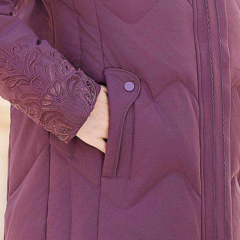 加厚毛领款 胖妈妈羽绒服中长款 冬季 中老年女装 气质外套 加肥加大码