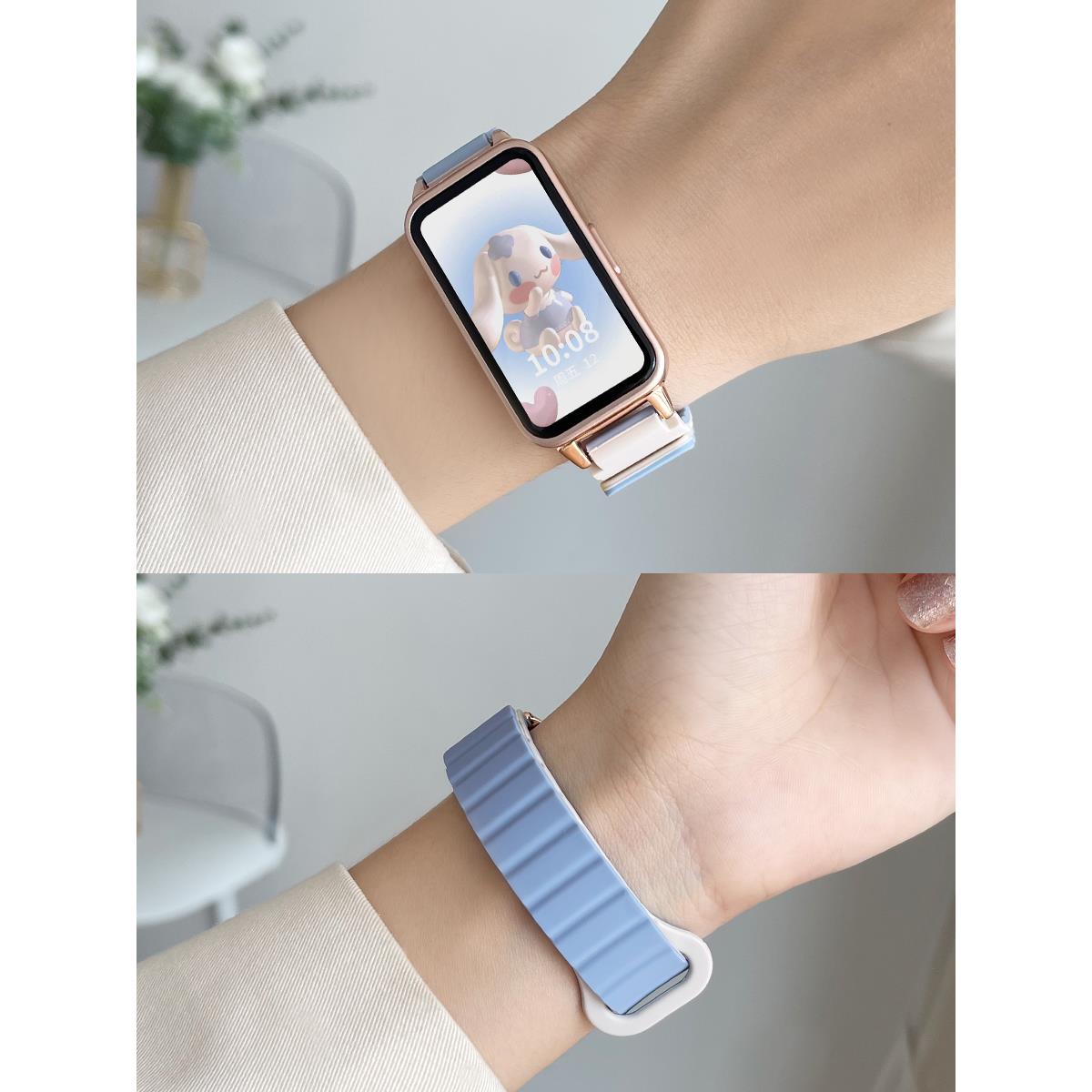 适用于华为手环10表带9手表8荣耀10磁吸硅胶擎云HA580腕表带智能女生夏天新款 配件 NFC替换带透防水防汗男士