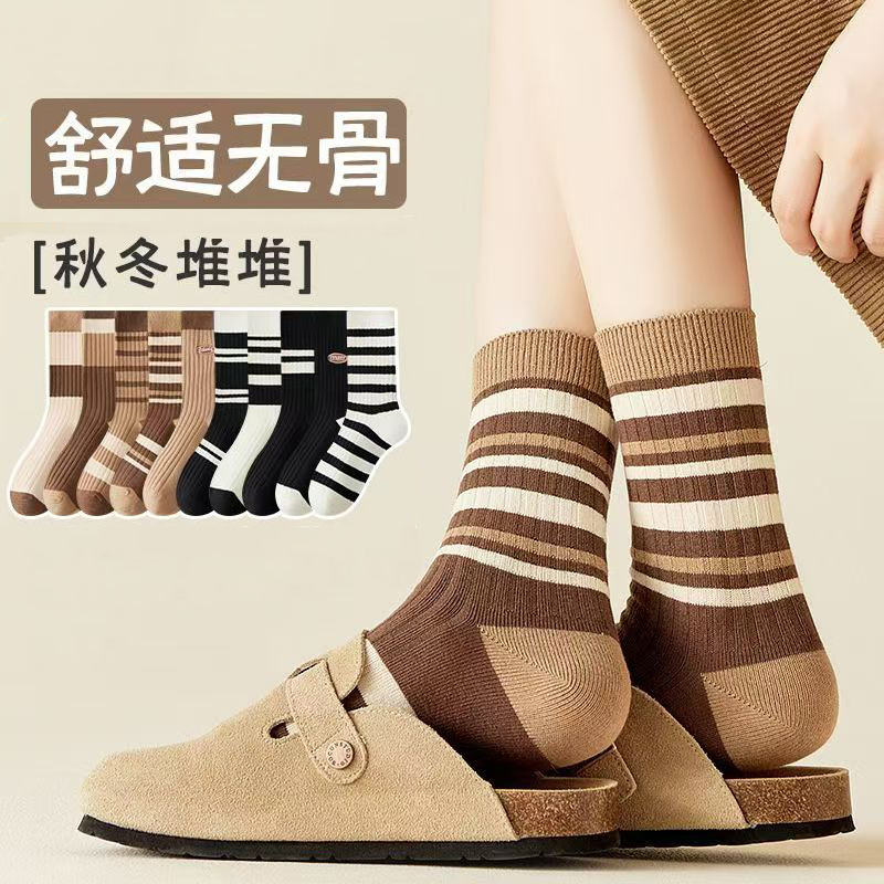 美拉德堆堆袜子女2025新款 外穿中筒袜春秋纯棉防臭无骨长袜 爆款