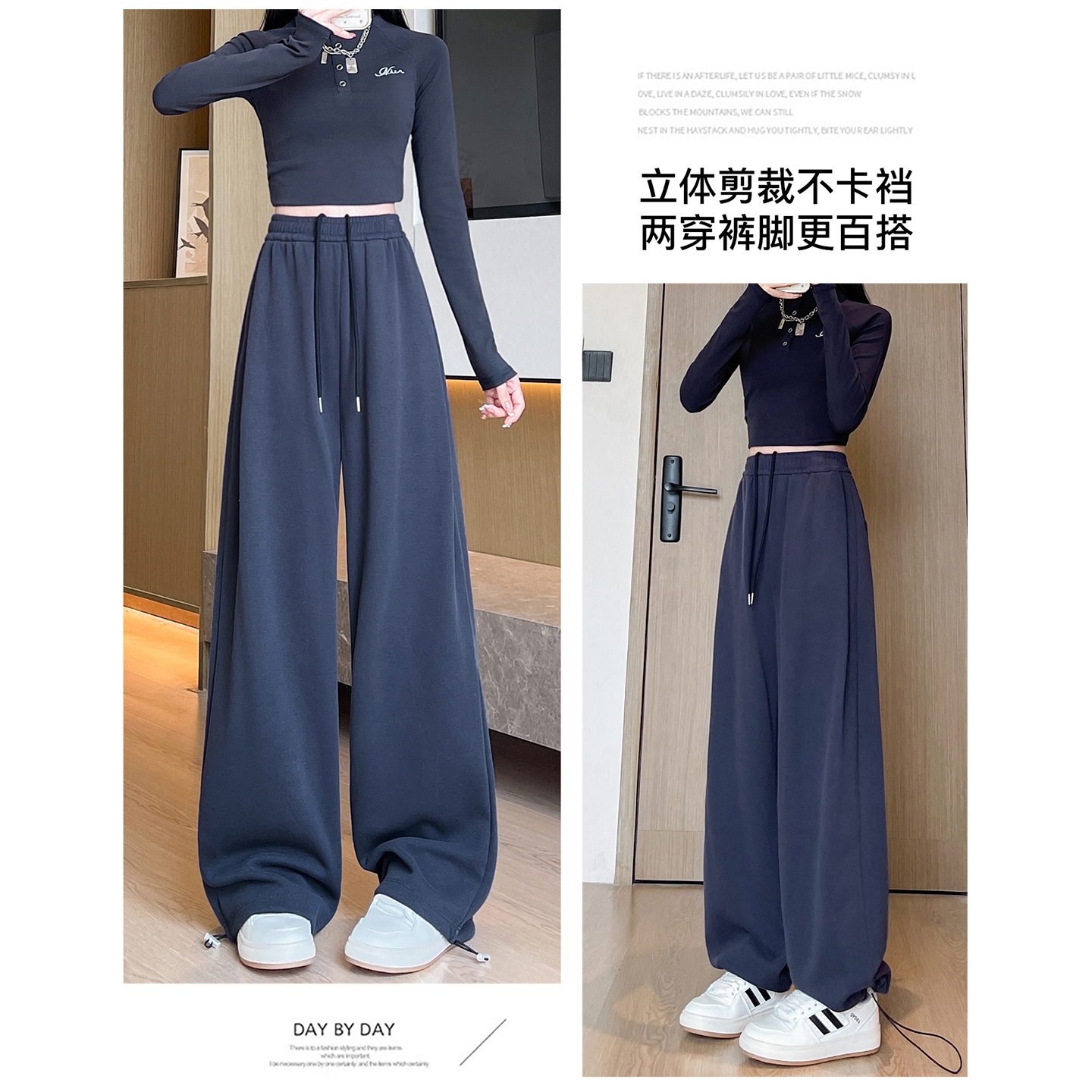 卫裤 宽松垂坠感高腰直筒加绒休闲阔腿美式 子女秋冬2025新款 运动裤