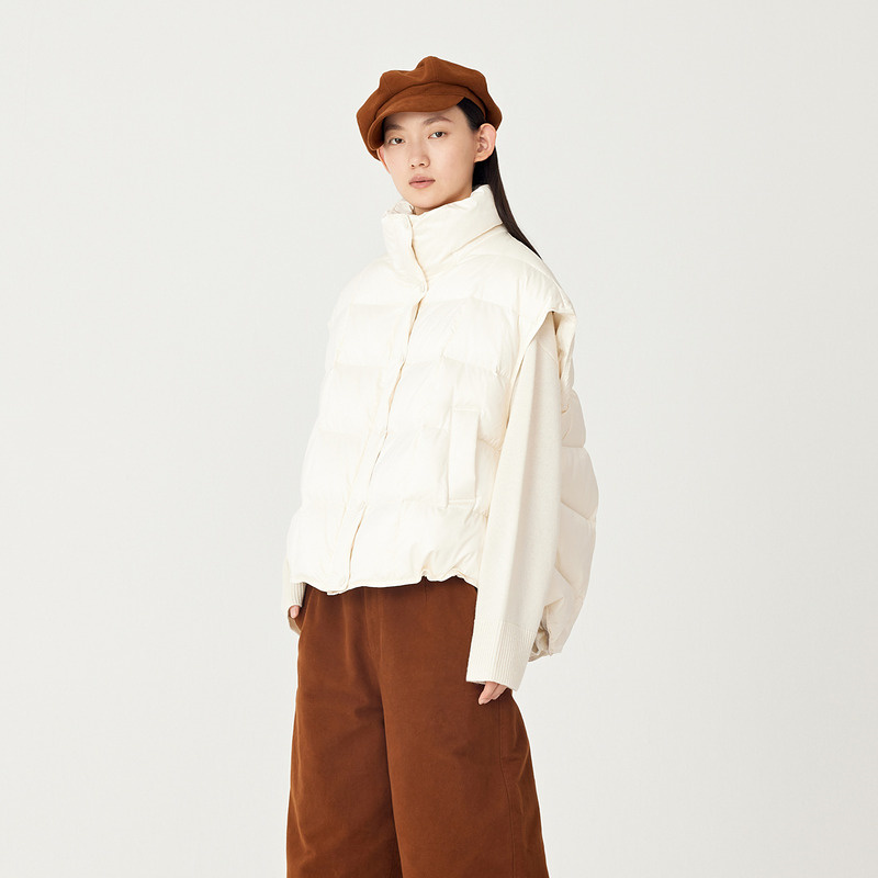 白色廓形鸭绒高领绗缝羽绒马甲女 AUM噢姆冬季 会员价1840元