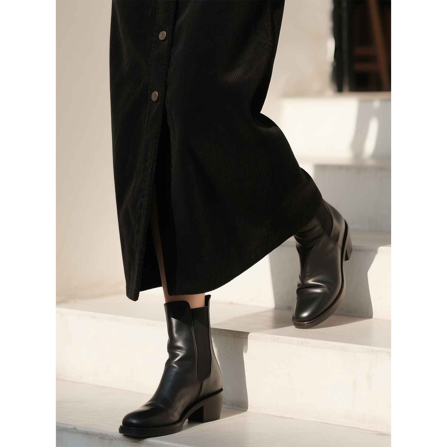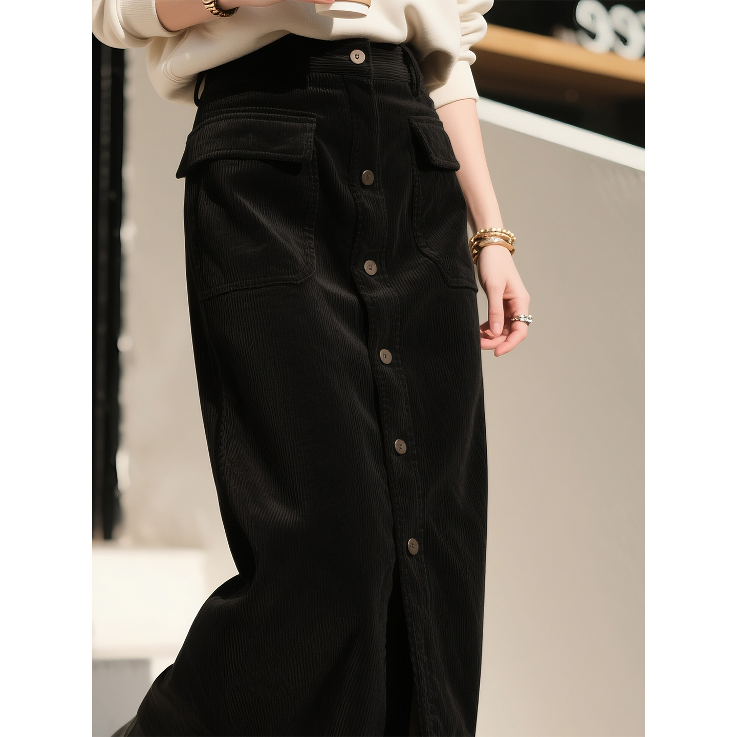 婉甸2025年秋新品 耀石黑直筒百褶长裙高腰显瘦半身裙1243K02GL2