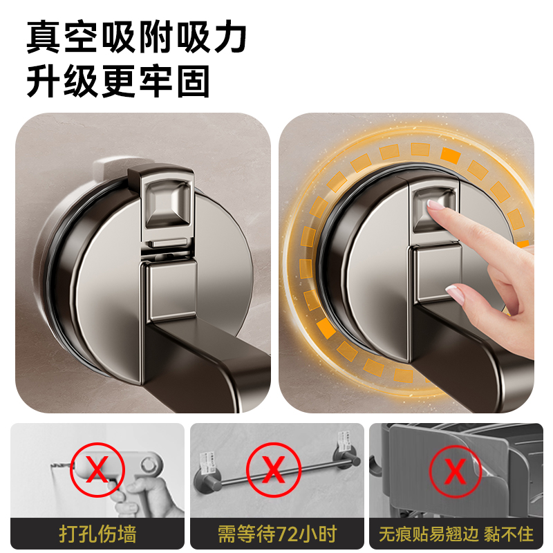 百悍吸盘卫生间浴巾架浴室厕所毛巾架置物架太空铝卫浴毛巾挂架