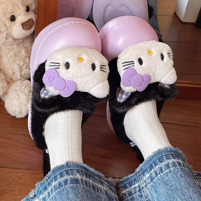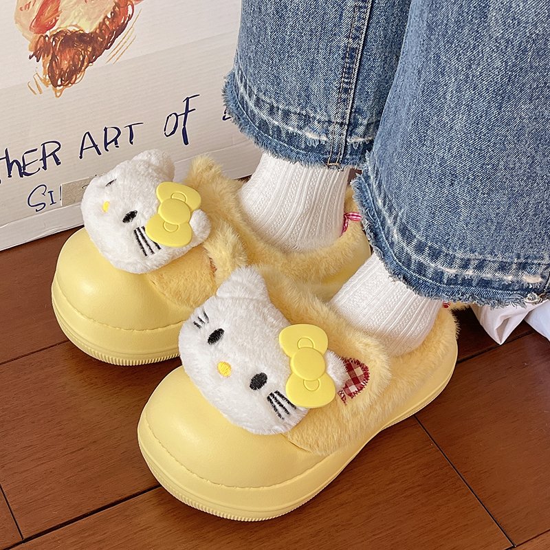 清新可爱雪莉玫棉拖鞋 少女居家格子包头拖防滑百搭外穿毛毛拖 冬季