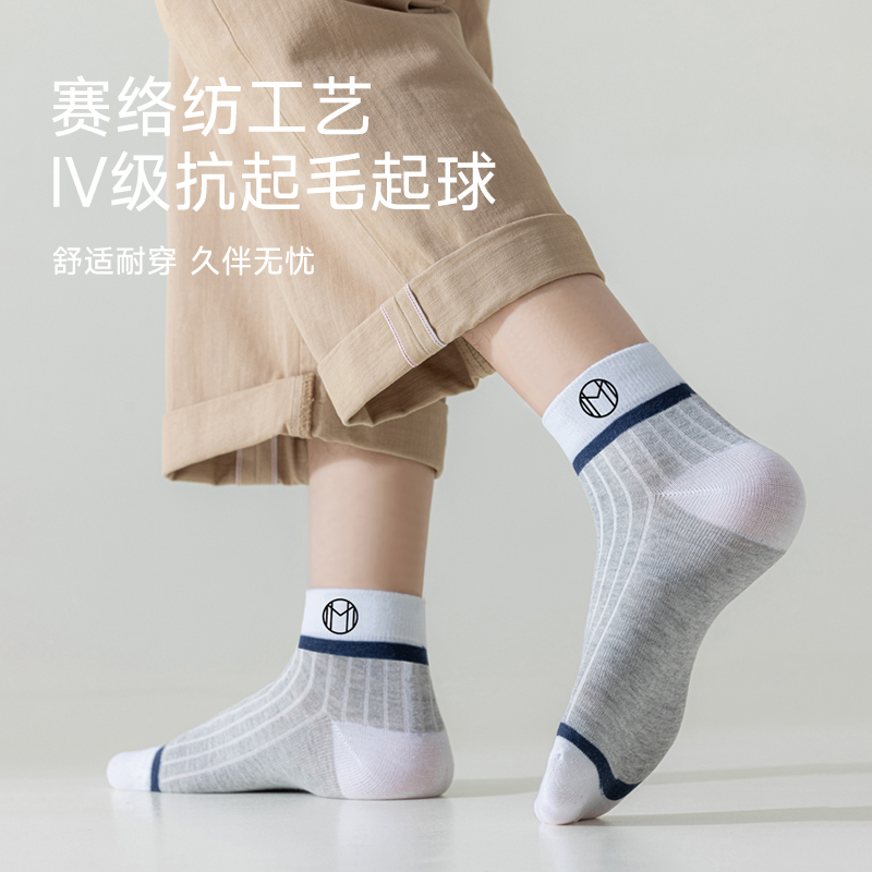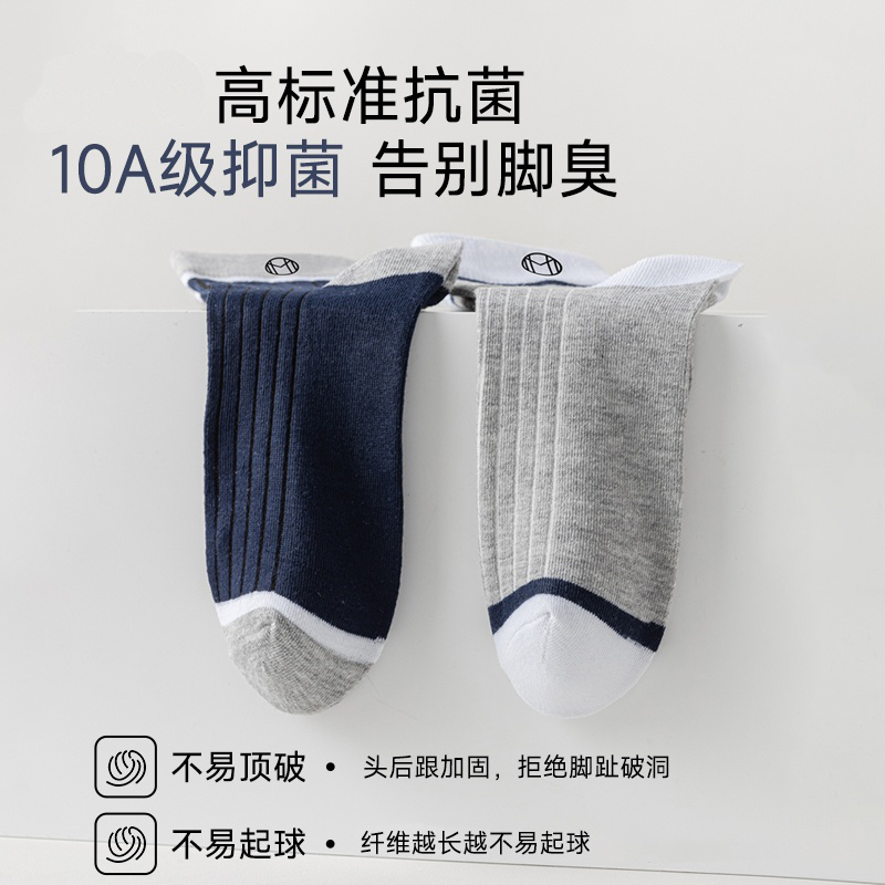 袜子男纯棉春秋款 中筒袜 短袜7a抗菌灰色无骨防臭脚吸汗青少年男士
