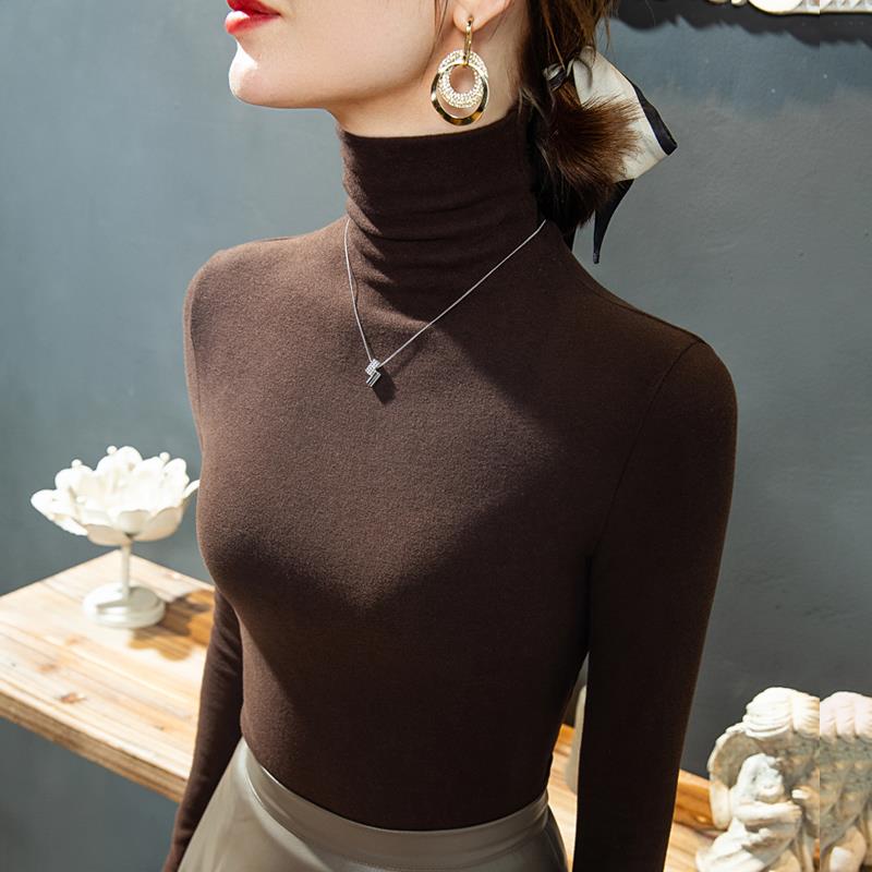 T恤洋气内搭上衣1018r 显瘦长袖 双面高领打底衫 女秋冬磨毛保暖修身
