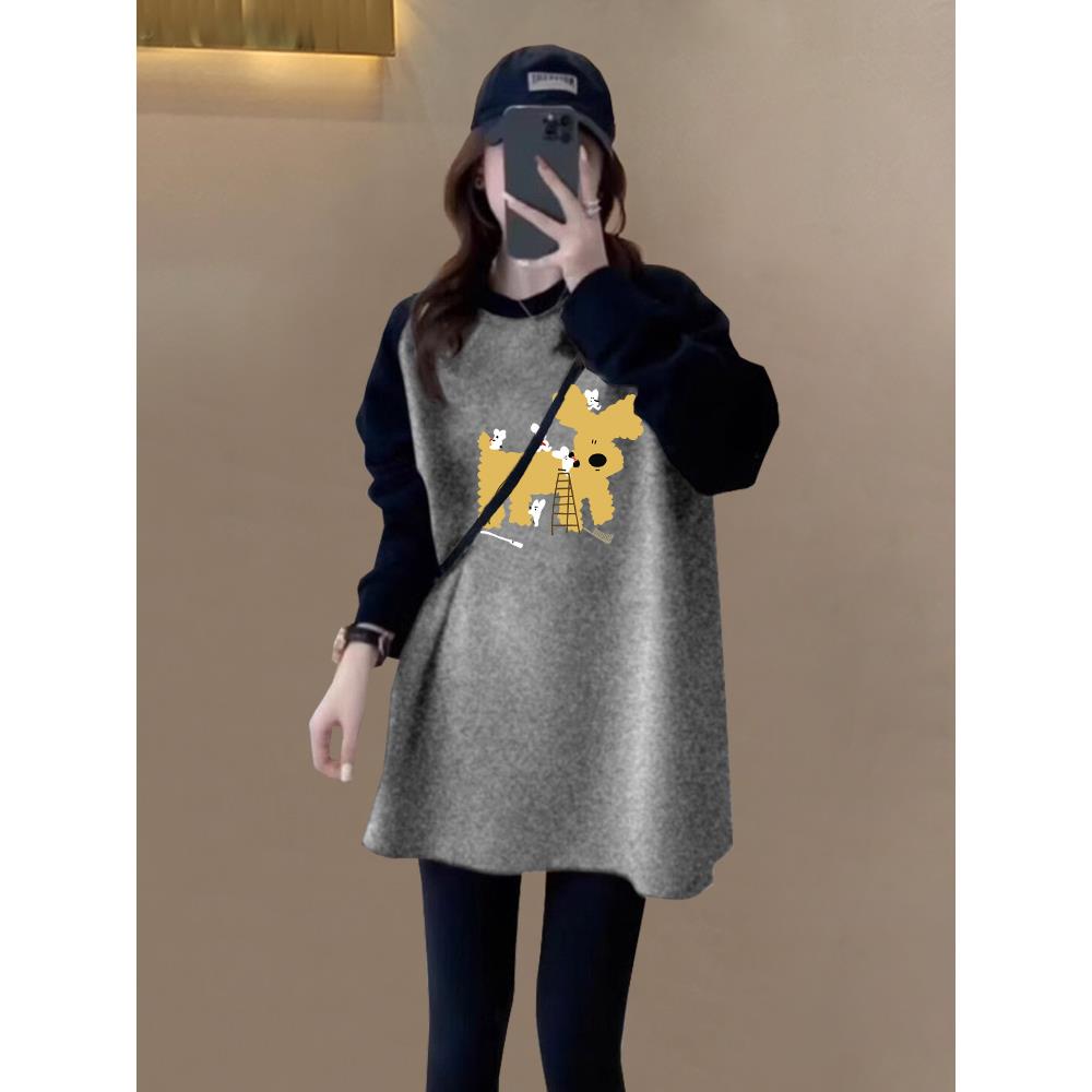 配鲨鱼裤 中长款 秋冬加厚内搭打底衫 T恤女2025新款 1017r 磨毛长袖