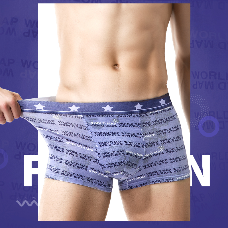 无痕纯棉抗菌透气平角运动大码 莫代尔男生四角裤 内裤 猫人男士