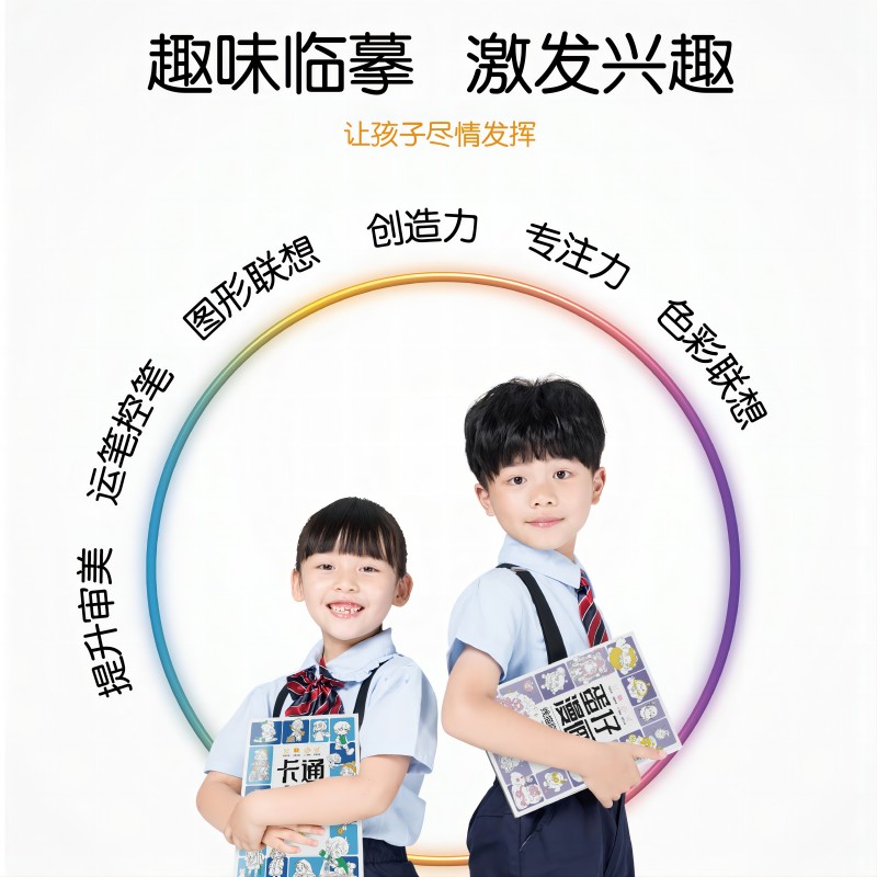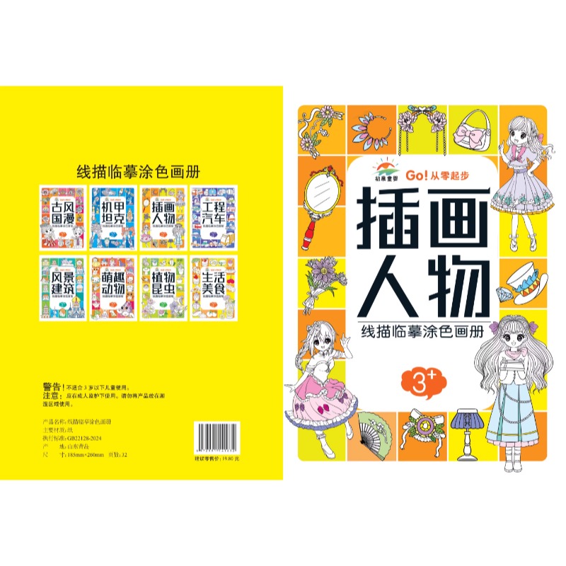 儿童线描临摹画册套装 萌趣动物生活美食插画人物机械战甲昆虫植物古风国漫全8册幼儿控笔训练卡通简笔画线稿绘画描线控笔图画本