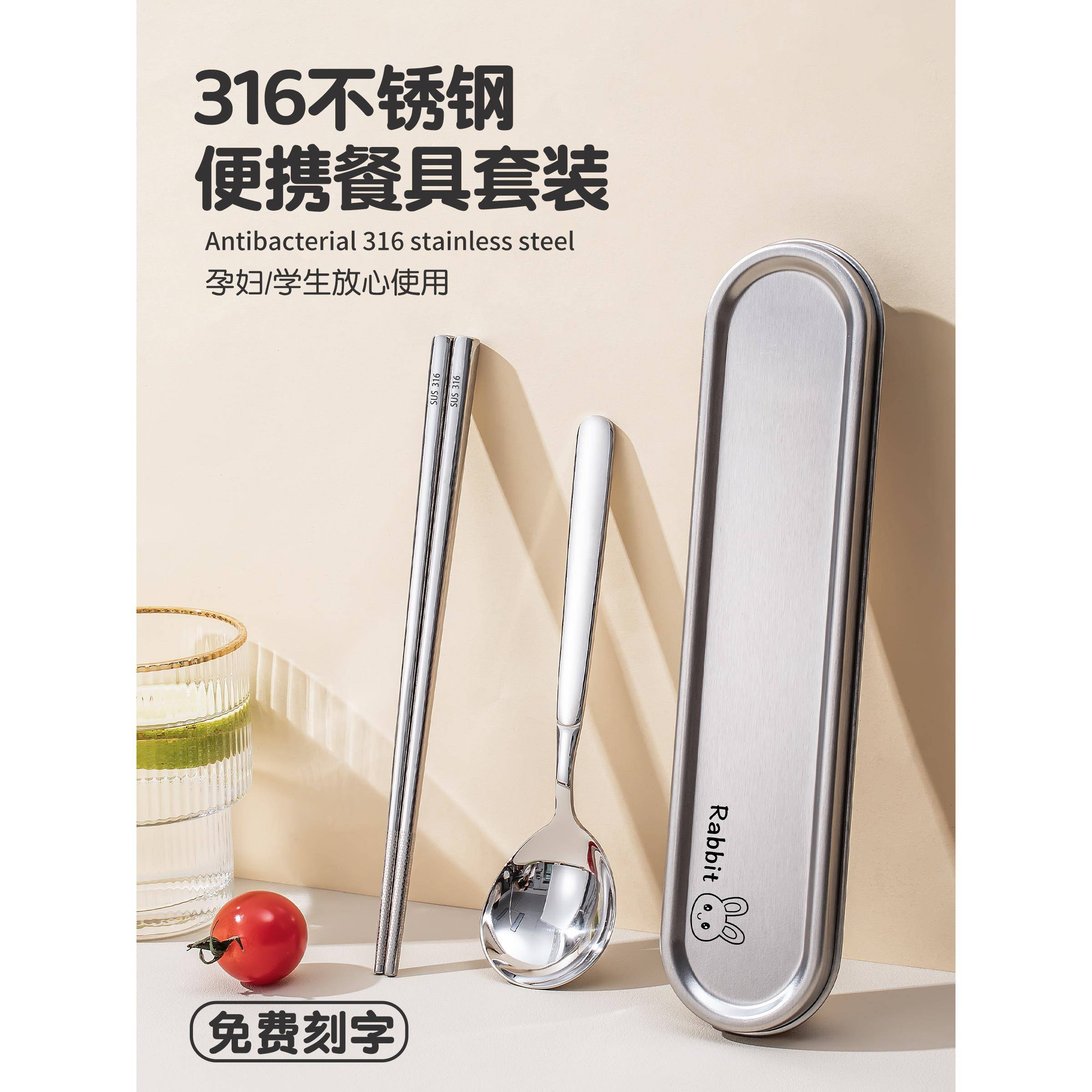 316筷子勺子套装 一人用便携餐具收纳盒 小学生专用不锈钢餐具套装