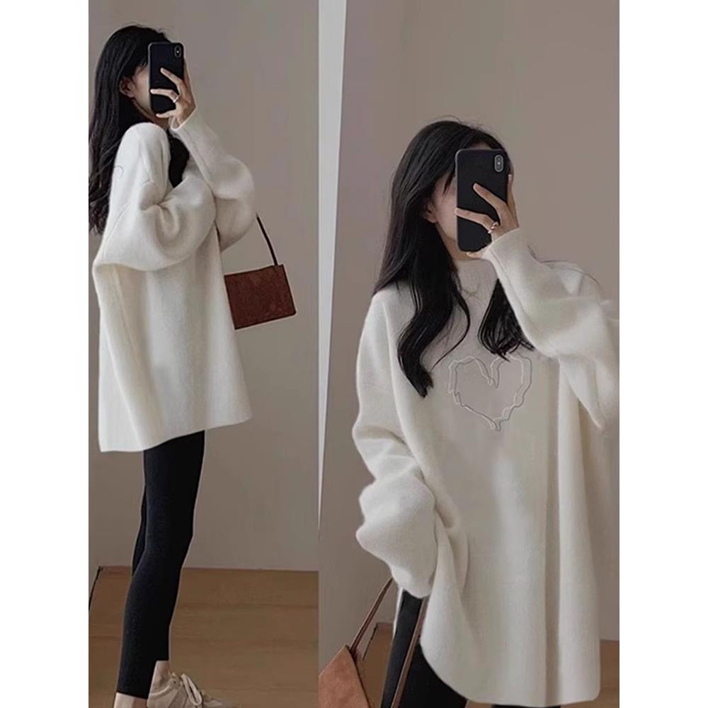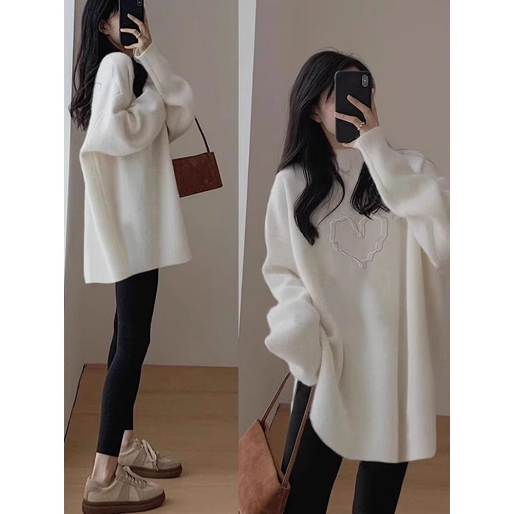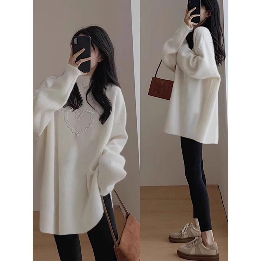 搭配 内搭遮臀鲨鱼裤 上1017r 女秋冬宽松中长款 白色半高领打底衫