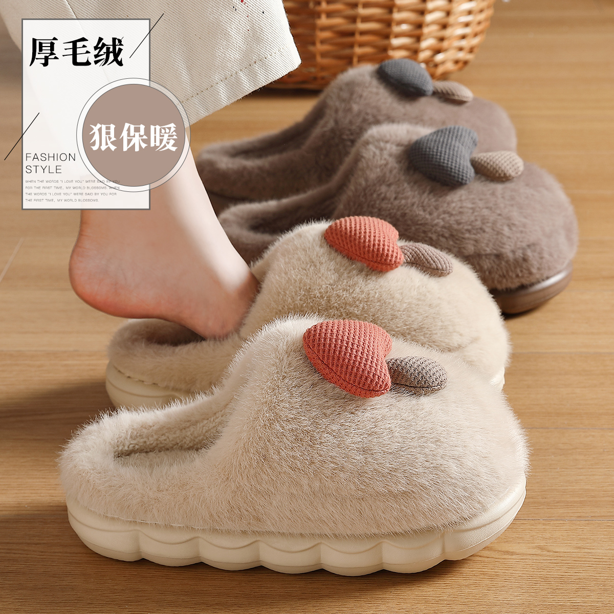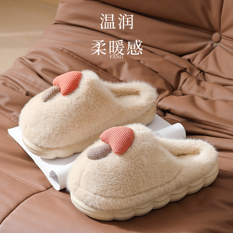 室内家居厚底毛绒情侣棉鞋 踩屎感棉拖鞋 女士秋冬保暖包跟2025新款
